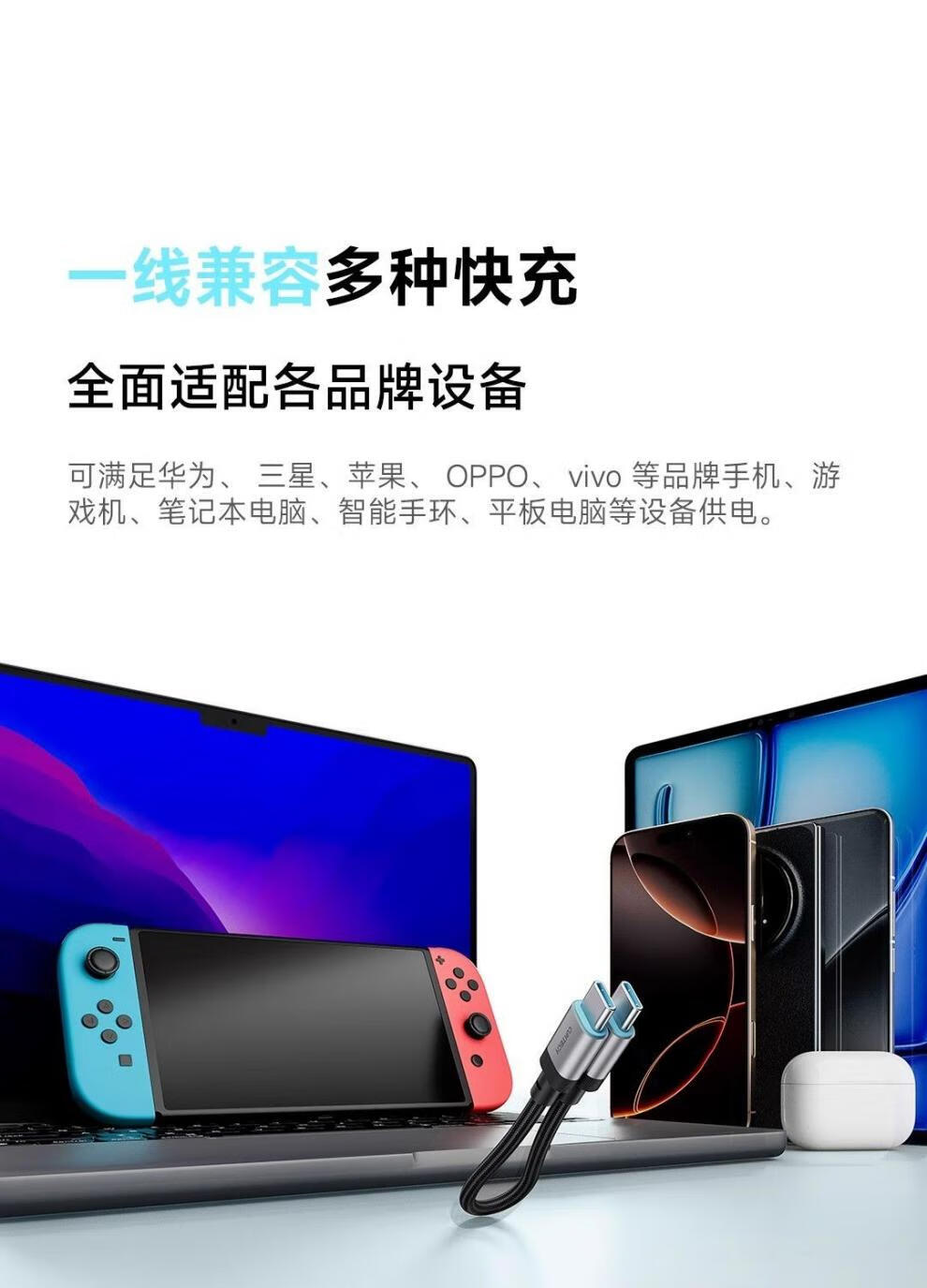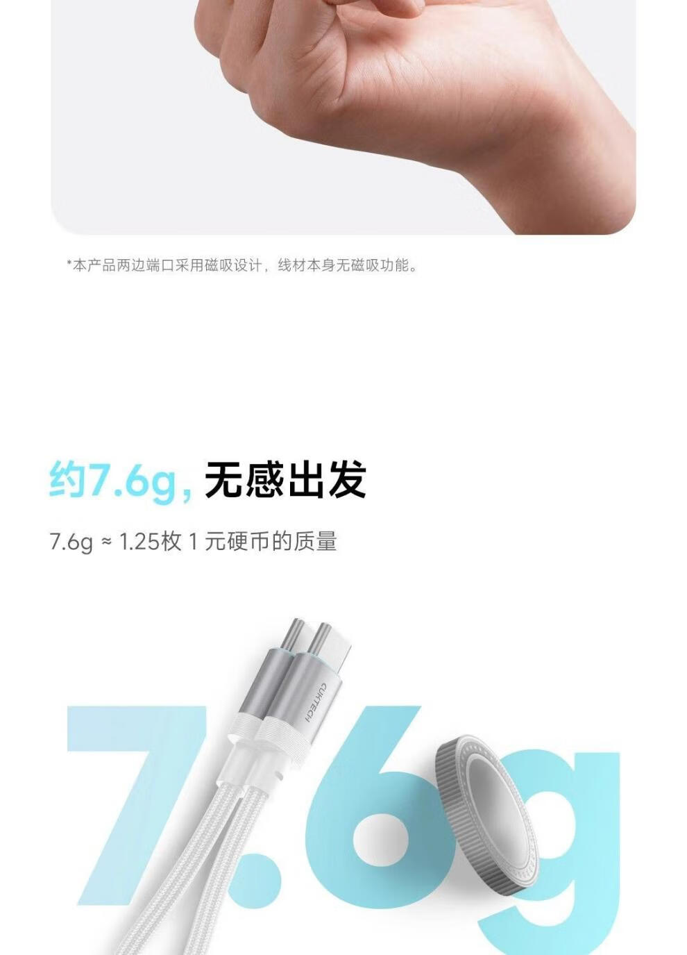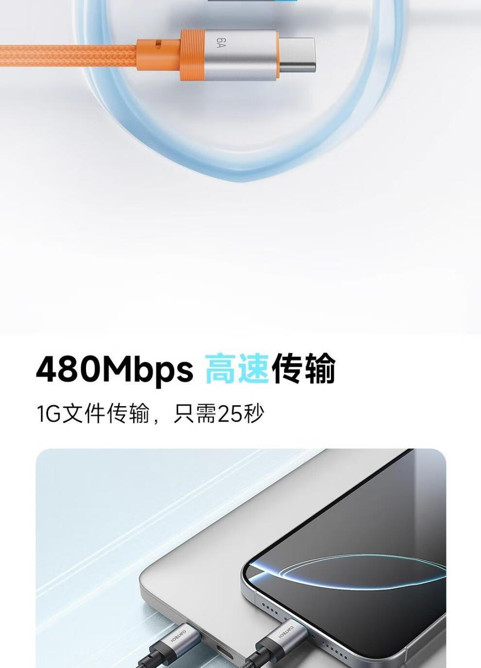 CUKTECH 240W data cable 6A fast charging cable magnetic cable suitable for Apple 16 Xiaomi Huawei magnetic port + 48 spindle braid + 6A high power one pack black
