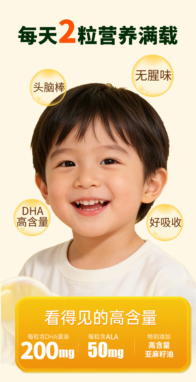 Small Sunflower DHA Algae Oil ARA Gel Student Exam Preparation Youth 6-18 Years Old Memory DHA Children 0-3-12 Years Old Authentic 0 Sugar No Odor Children Love to Eat 90 Capsules * 2 Buckets
