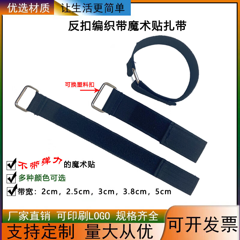 Reverse-buckle Velcro straps, non-elastic cargo binding and fixing straps, self-adhesive straps, woven straps, reverse-buckle woven straps, iron buckles 3.2cm*70cm*2 strips only black