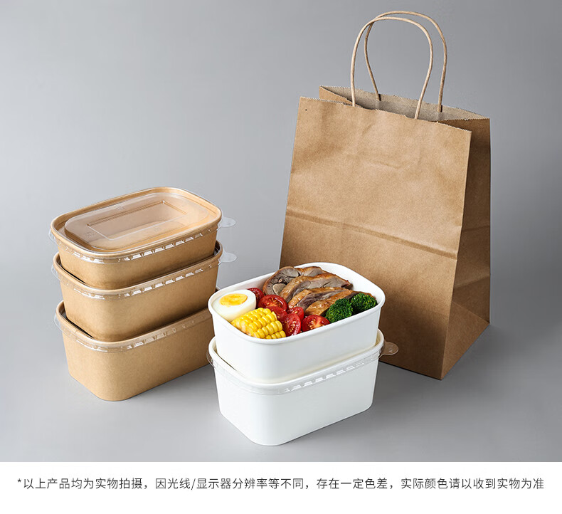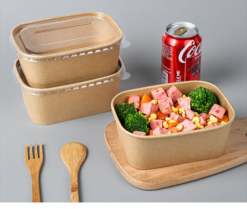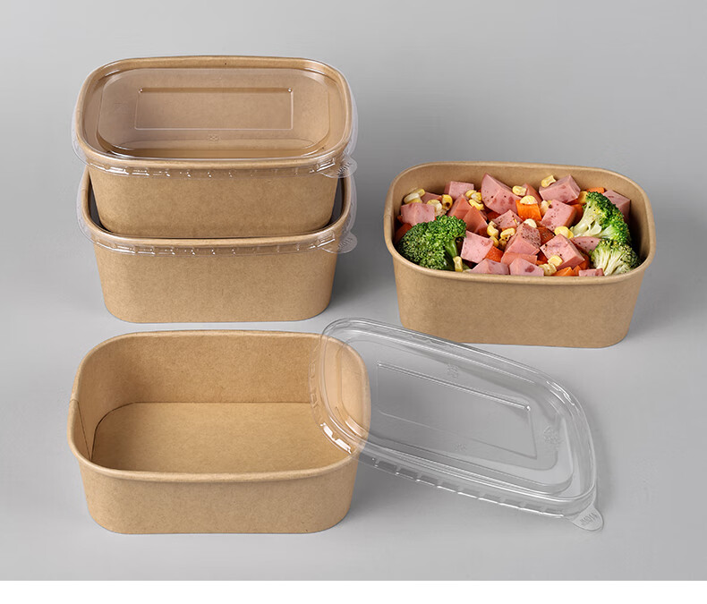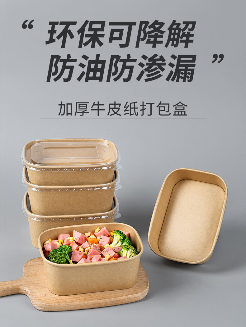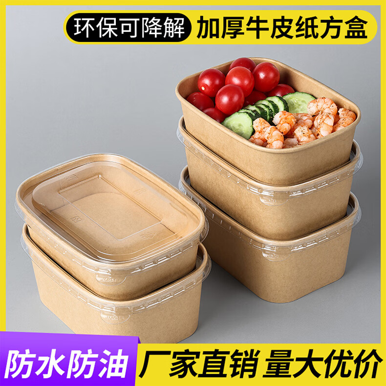 Disposable kraft paper square box takeaway commercial fruit lunch box light meal box environmentally friendly packed lunch box 1000ml square box without lid (300 pieces)