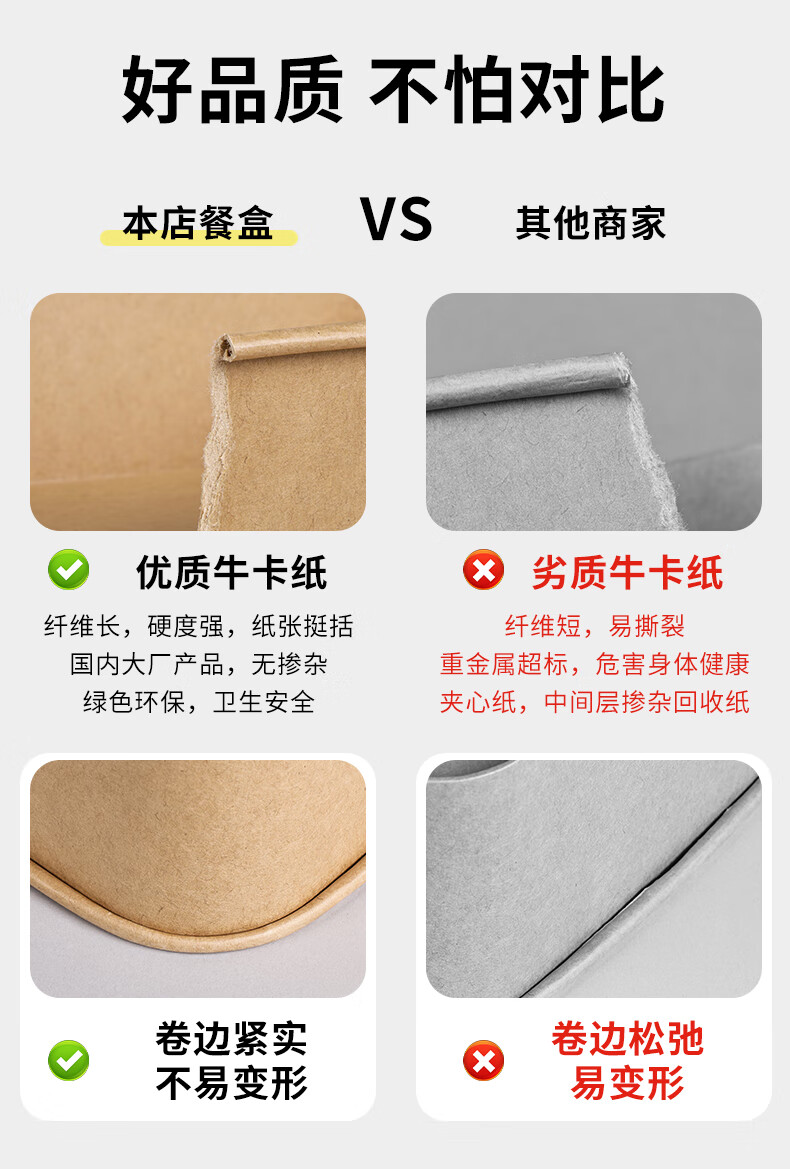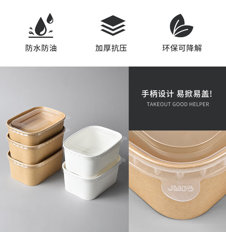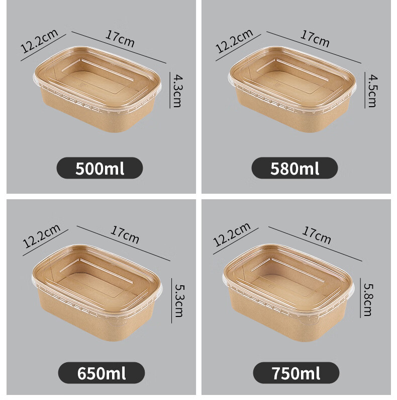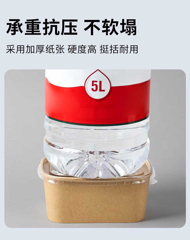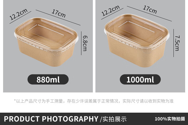 Disposable kraft paper square box takeaway commercial fruit lunch box light meal box environmentally friendly packed lunch box 1000ml square box without lid (300 pieces)