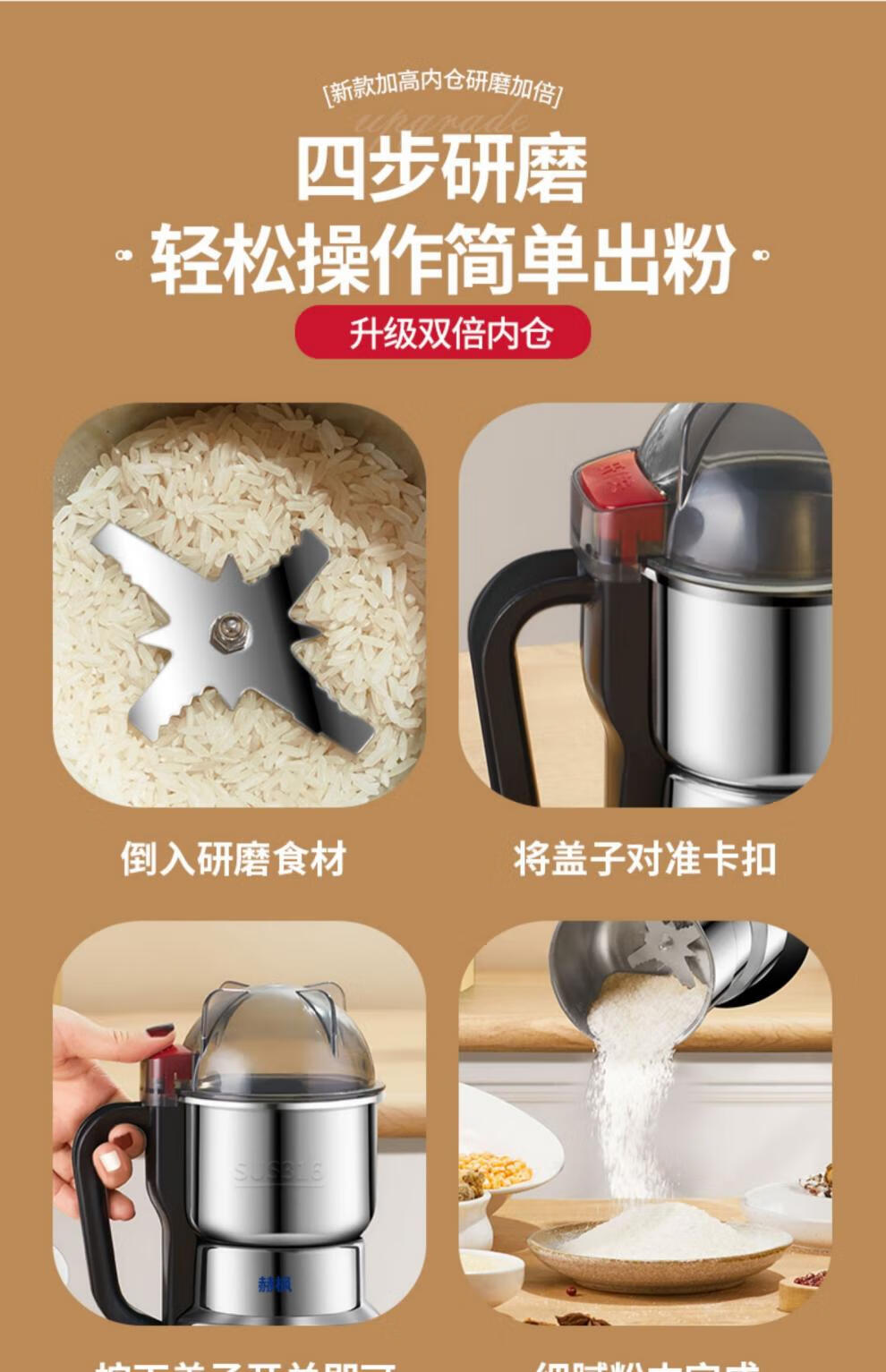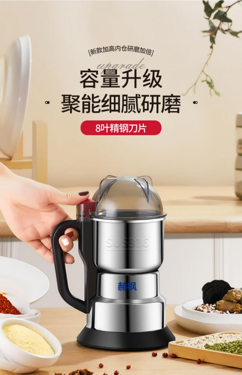 Fat Donglai's same type of grinder ultra-fine grinder pulverizer grinder household small fishing grain miscellaneous 058 300ml 316 stainless steel 600W copper motor (6 twelve leaves
