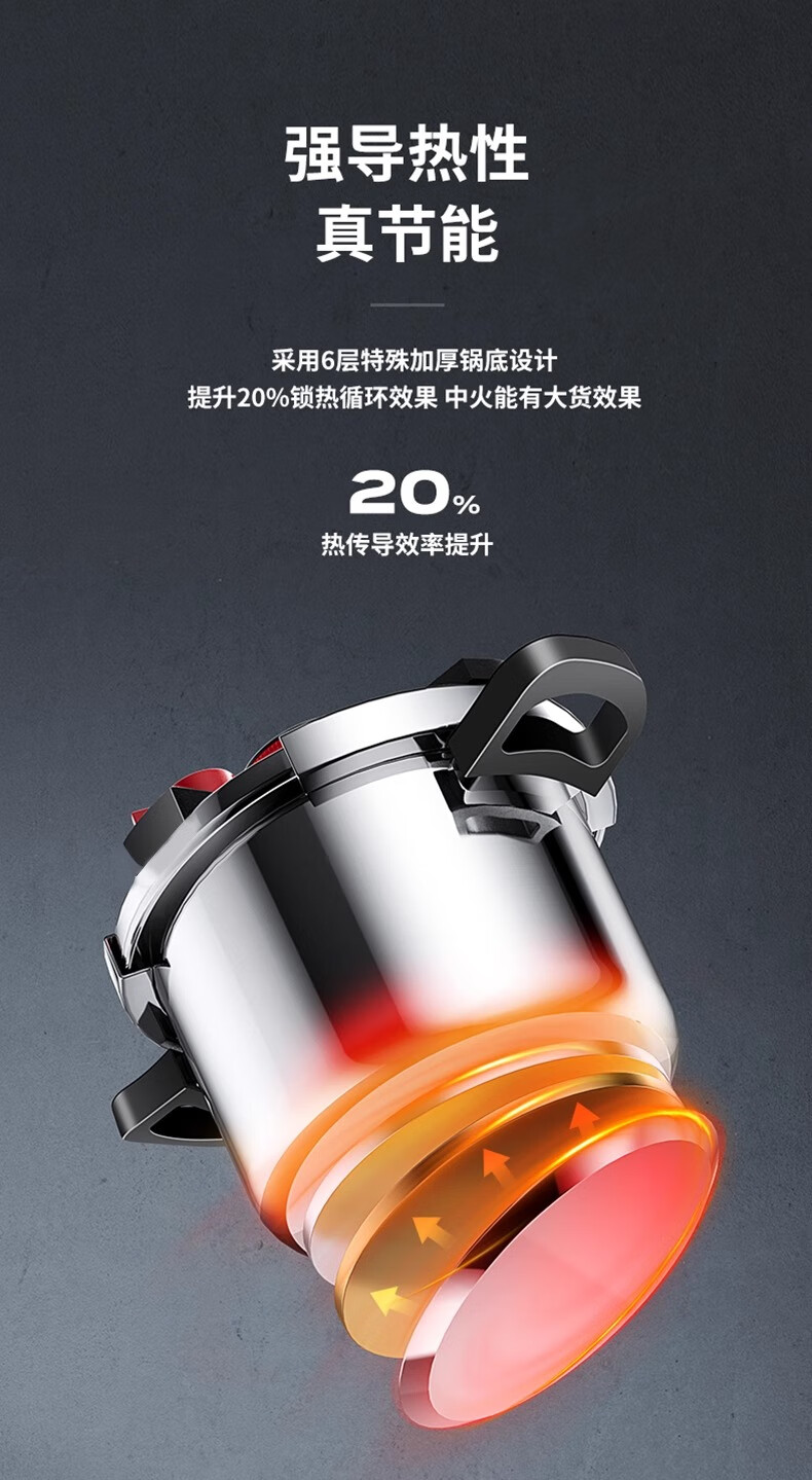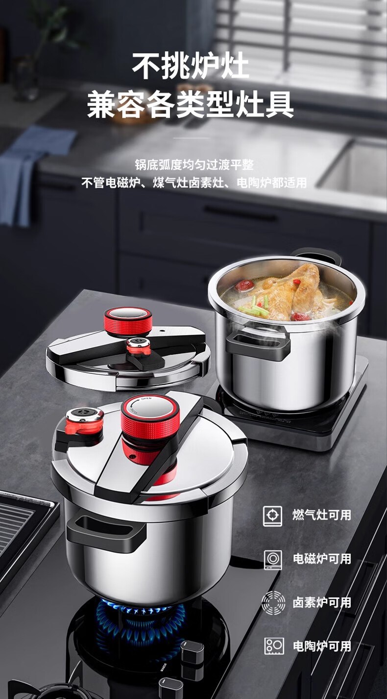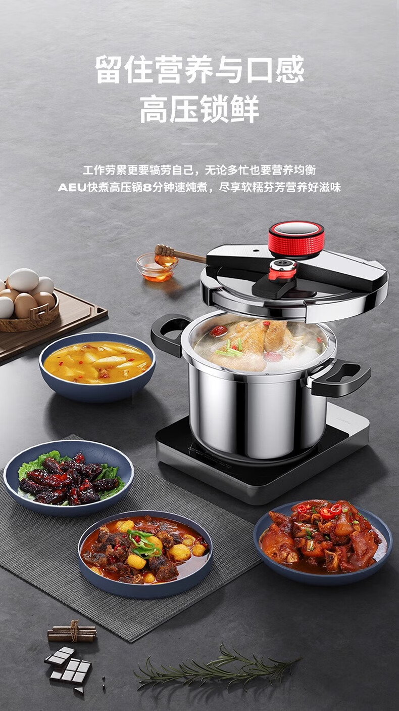 AEU official store German explosion-proof 120kPa high pressure household 304 Chinese Academy of Sciences stainless steel pressure cooker 6L explosion-proof pressure cooker