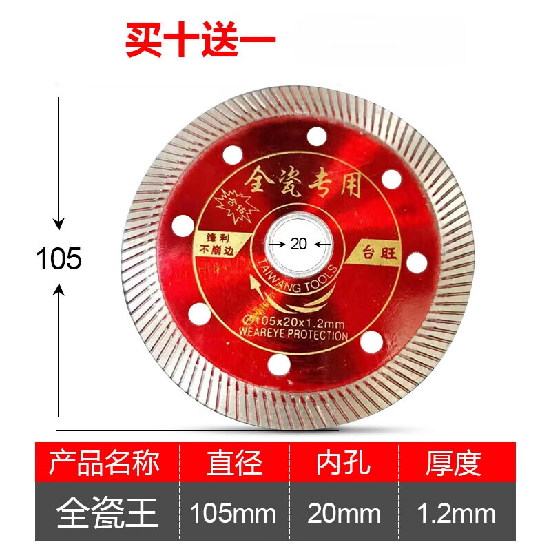 Taiwang ceramic tile cutting piece vitrified tile ceramic microcrystalline stone all-ceramic ultra-fine corrugated special angle grinder blade Taiwang 105 blue wave 10 get 1 free