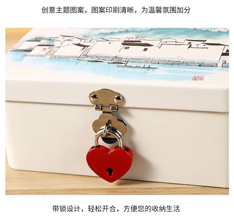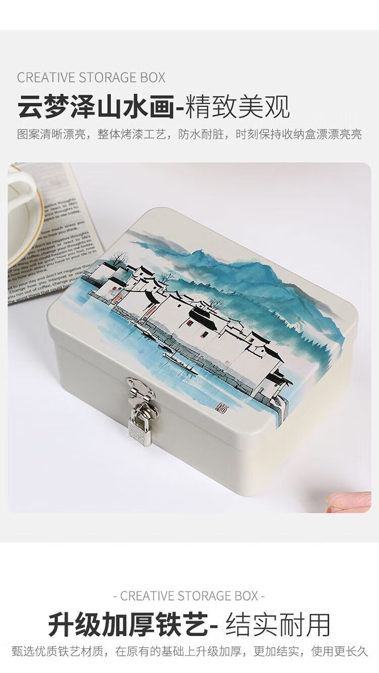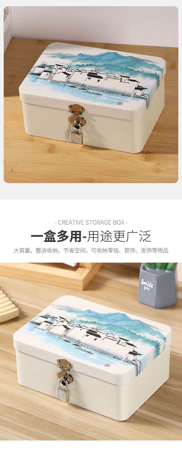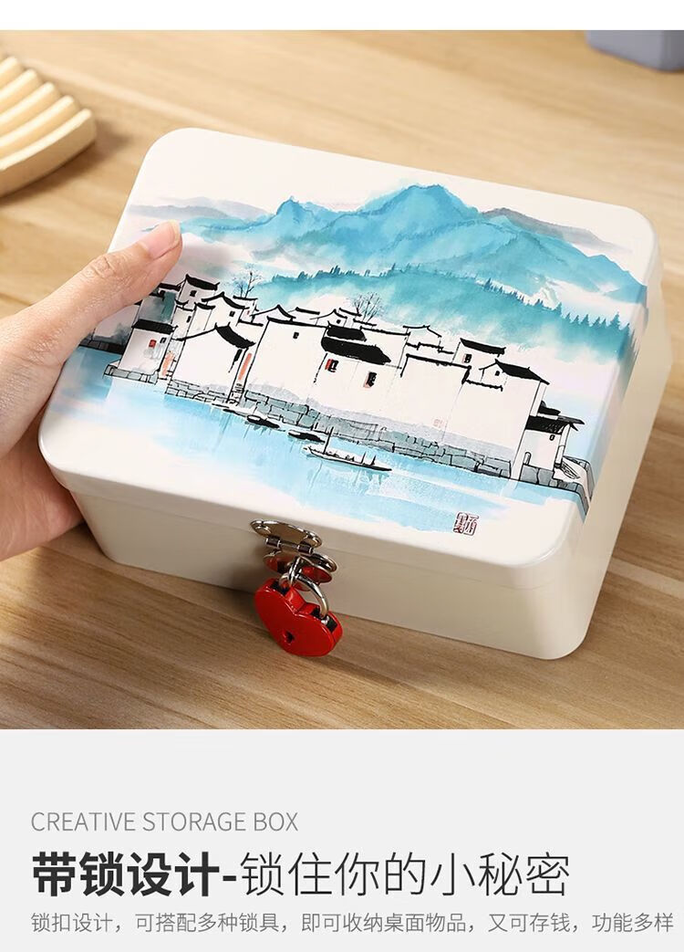 Meikejie lockable small box anti-theft safe small student version adult piggy bank large capacity mobile phone desktop storage box silver iron box-medium lock