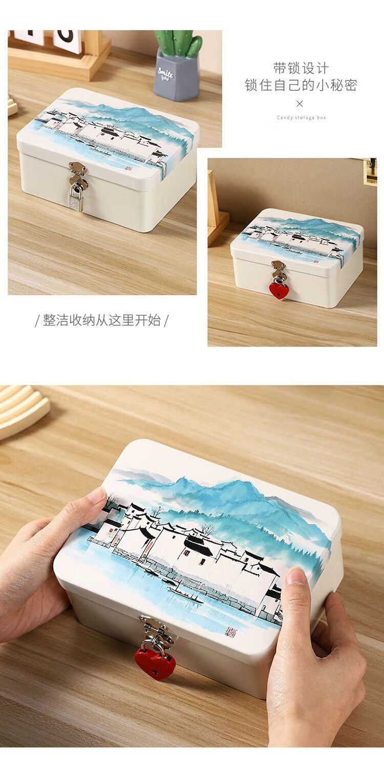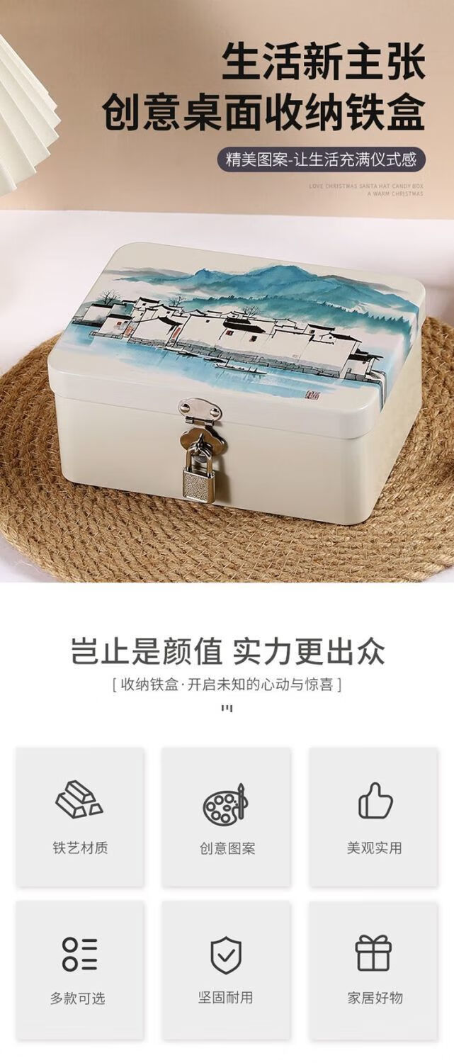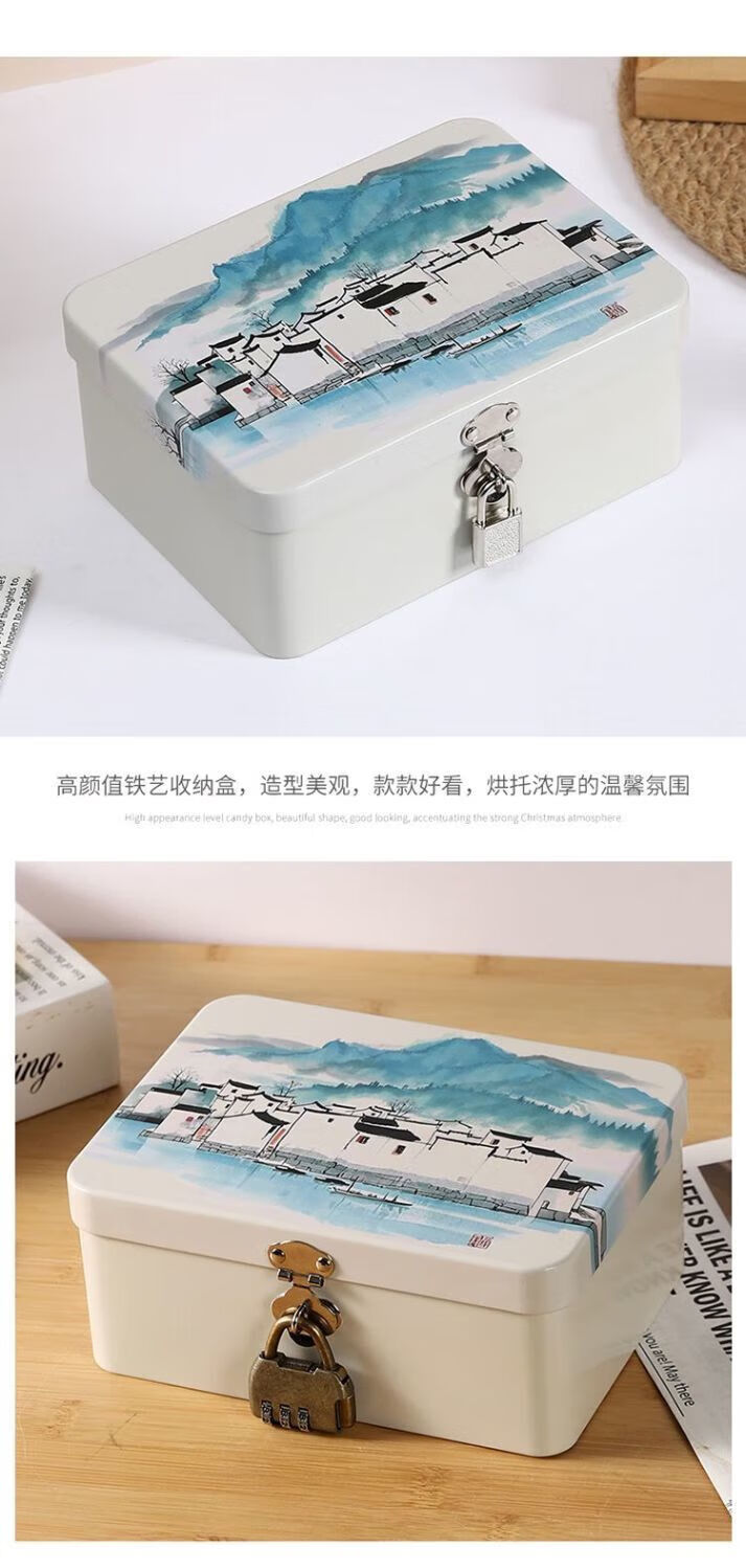 Meikejie lockable small box anti-theft safe small student version adult piggy bank large capacity mobile phone desktop storage box silver iron box-medium lock