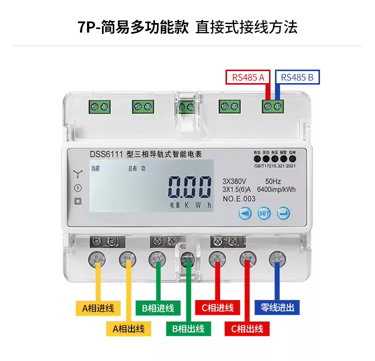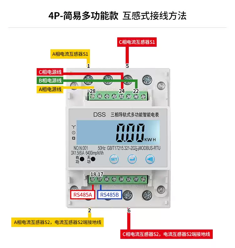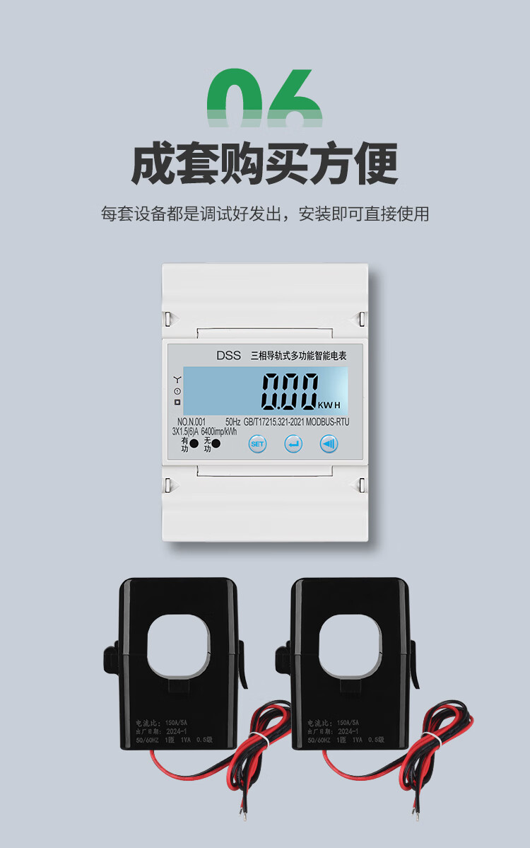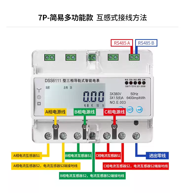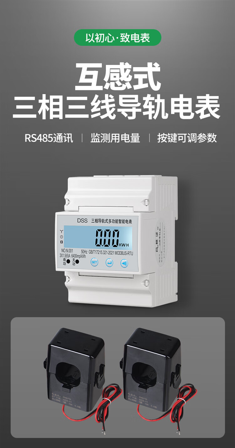 Three-phase three-wire 485 transformer rail-type electricity meter 4P remote meter reading 380v intelligent multi-function track electricity meter open type monitoring 36mm500/5A2 only