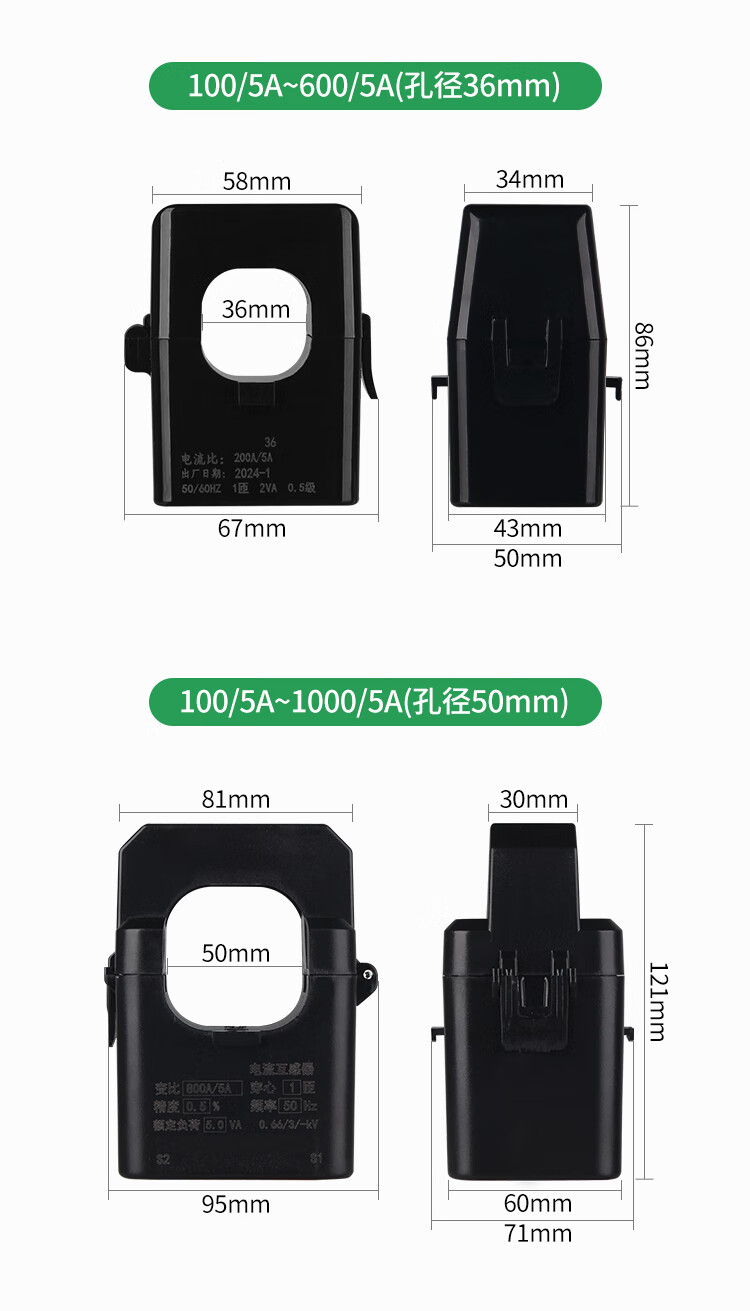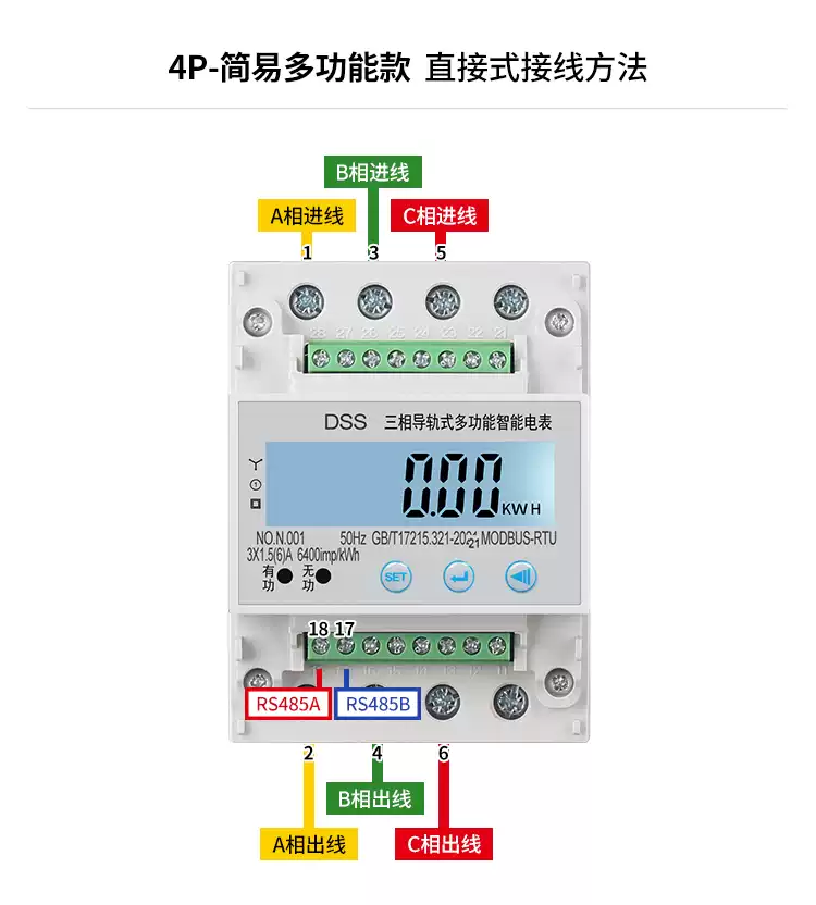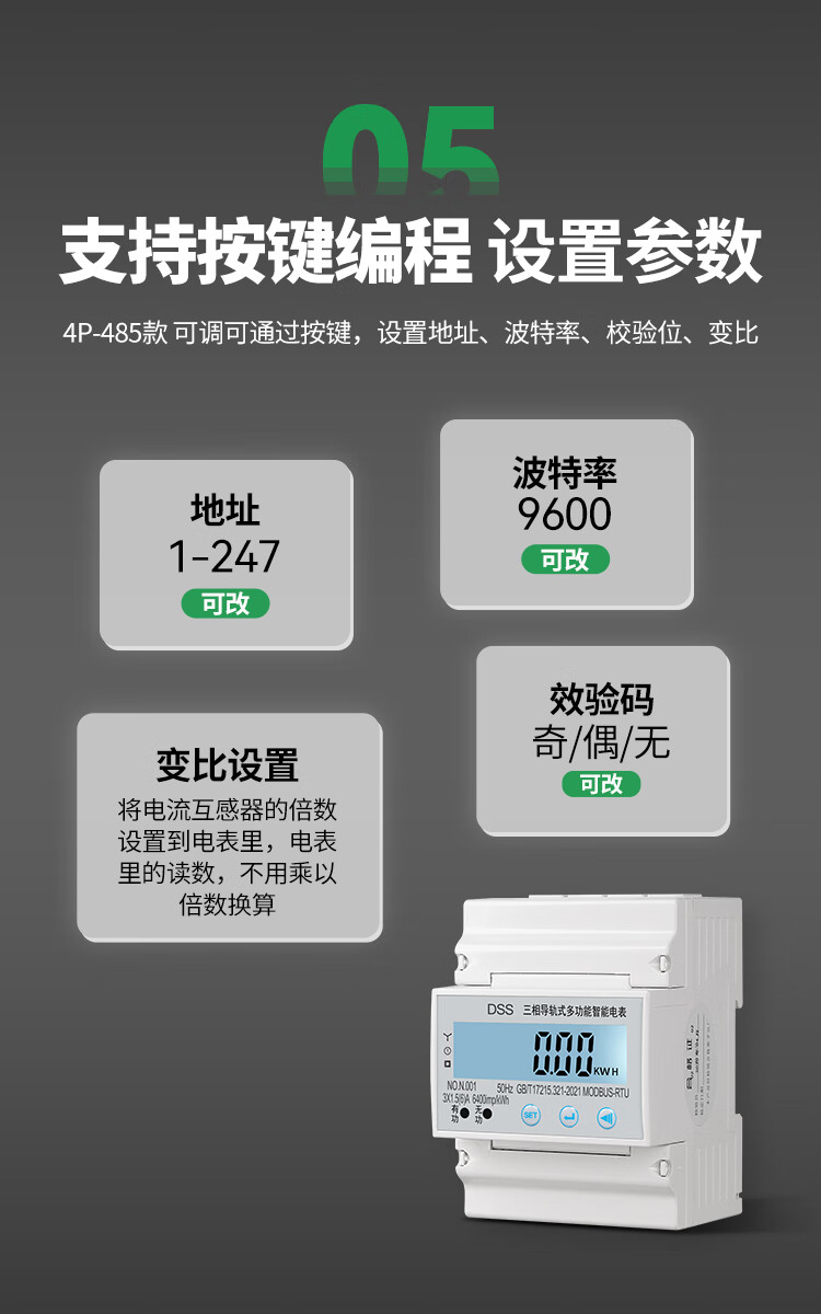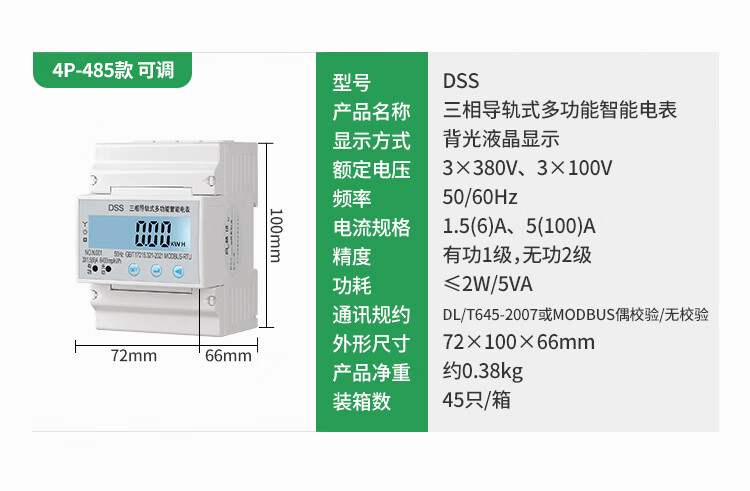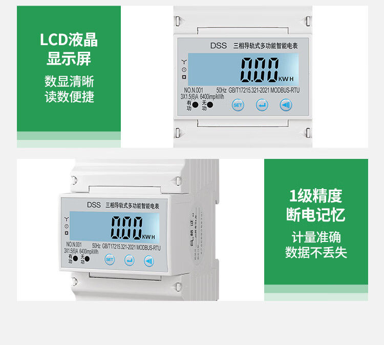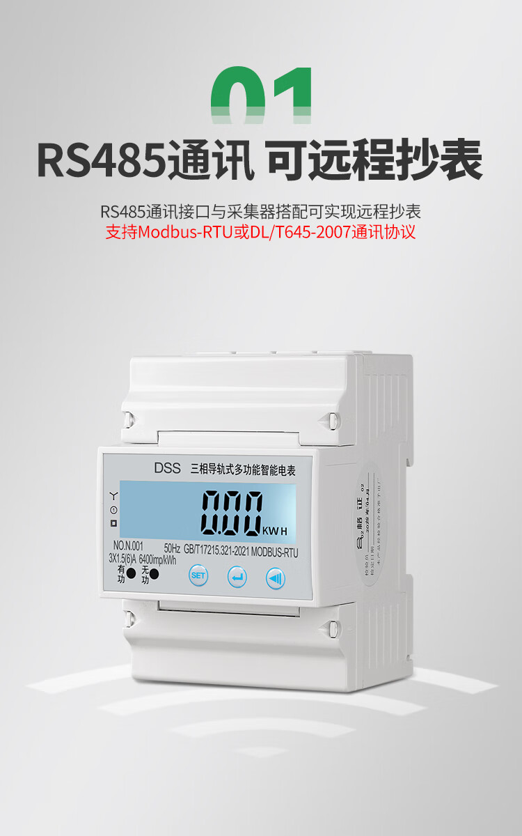 Three-phase three-wire 485 transformer rail-type electricity meter 4P remote meter reading 380v intelligent multi-function track electricity meter open type monitoring 36mm500/5A2 only