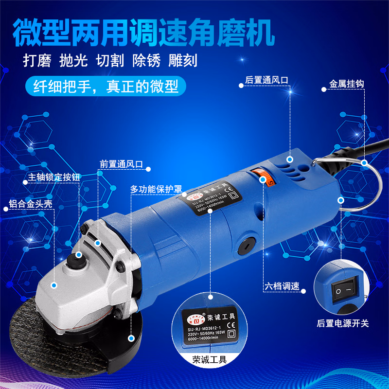 Sanqihu mini angle grinder, adjustable speed, small cutting machine, ceramic tile seam cleaning machine, beauty seam artifact, micro grinder, blue non-adjustable speed (spot)