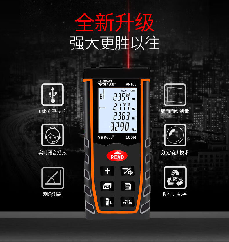 BEYZK handheld laser distance meter high-precision tool distance industrial measuring instrument room measuring instrument electronic ruler AR120 voice model 120 meters + USB charging