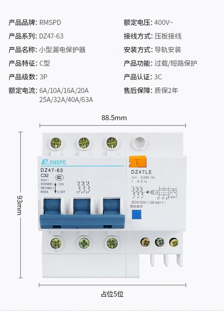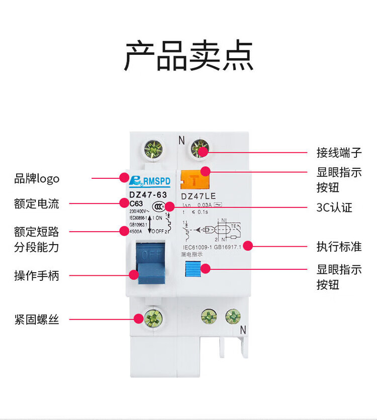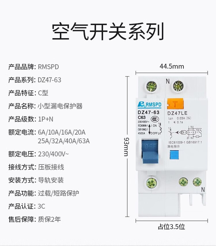 GJXBPDZ47LE32C20 leakage protection circuit breaker leakage protector DZ47LE household DZ47LE663A air switch 1P+N40A