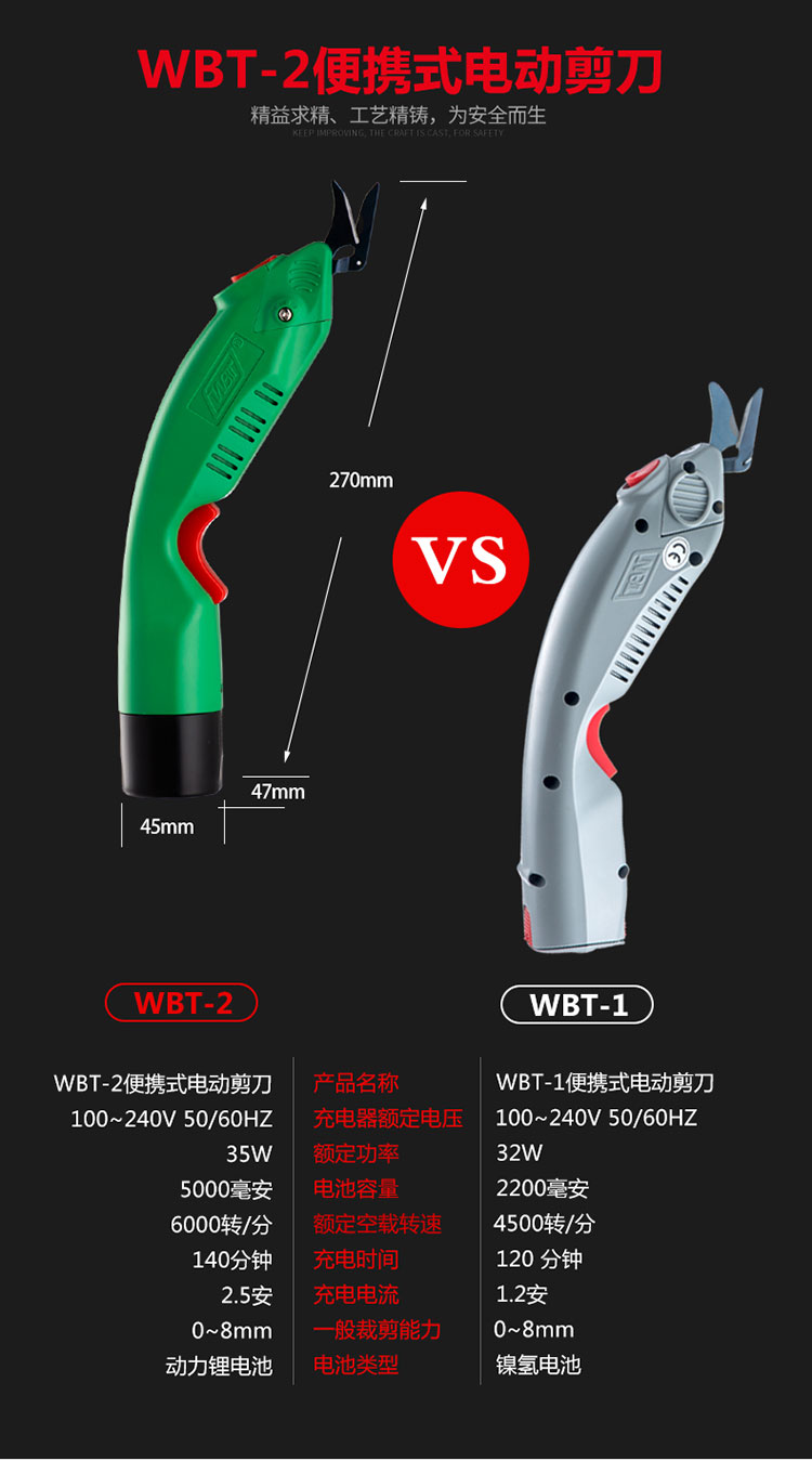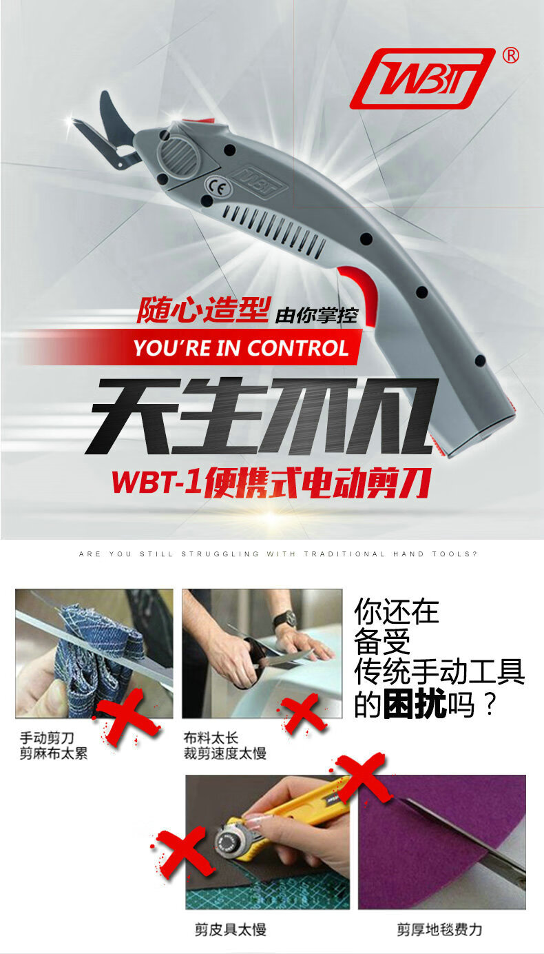 WBT electric scissors cutting artifact hand-held cutting knife trimming cutting machine clothing electric scissors WBT-1 plug-in 2 blades
