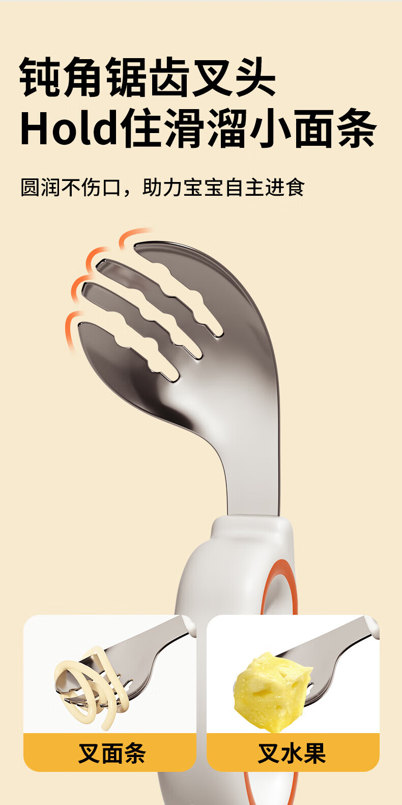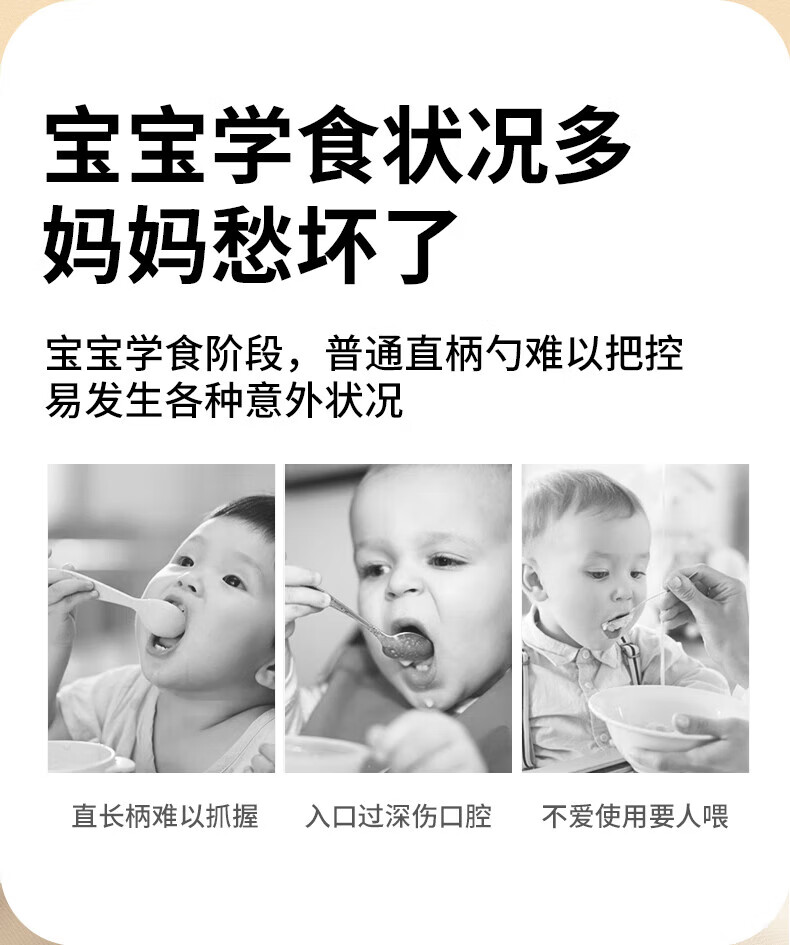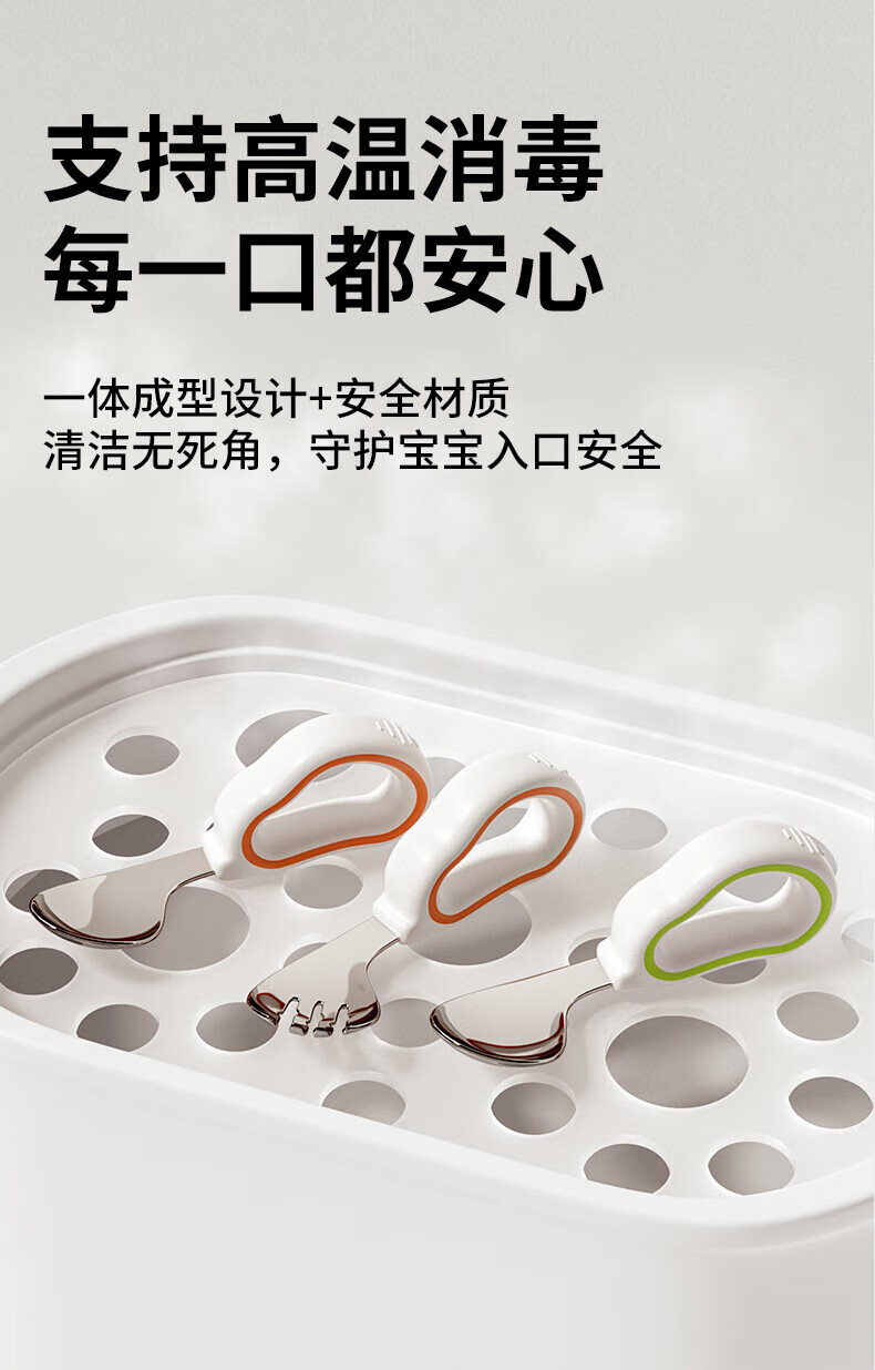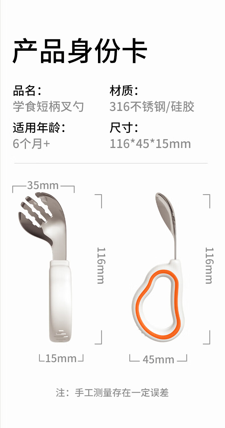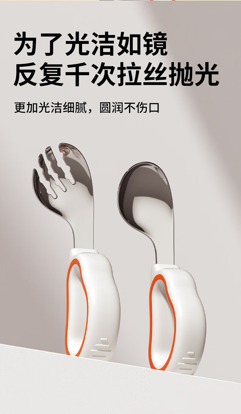 He Jiangong German baby independent eating spoon learning to eat training one-year-old baby learning to eat children's stainless steel tableware food supplement 1 316L material_curved handle design spoon and fork set