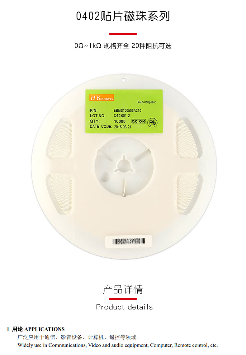 YourCee0402 SMD ferrite beads series 9R36R56R60R100R150R180R470R600R800R1K 11 _ 25% 50 pieces