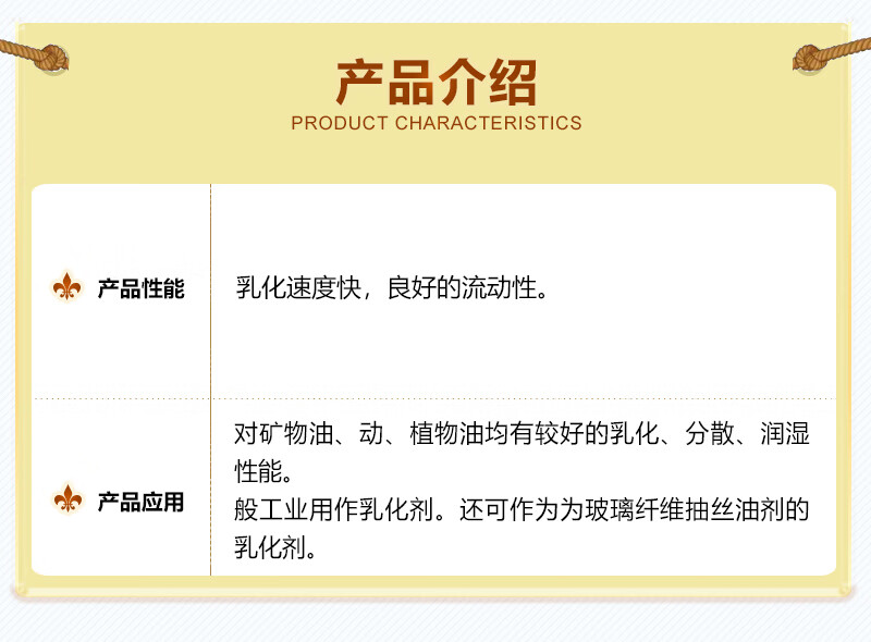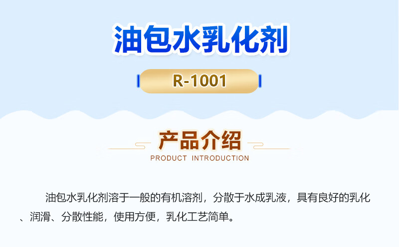 Water-in-oil emulsifier, easily soluble in organic solvents, mineral oil, stable emulsification, non-stratification, dispersion and good wettability. Sample 100~200g shipped by SF Express