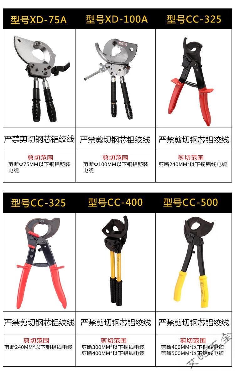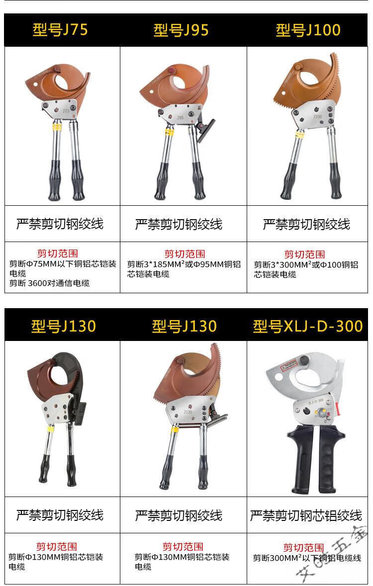 Jingeyu Ratchet Cable Cutter Electrician's Scissors Copper-Aluminum Armored Cable Cutter Wire-Breaking Plier J40 Cutter...S XD-130A130 or below copper-aluminum armored cable