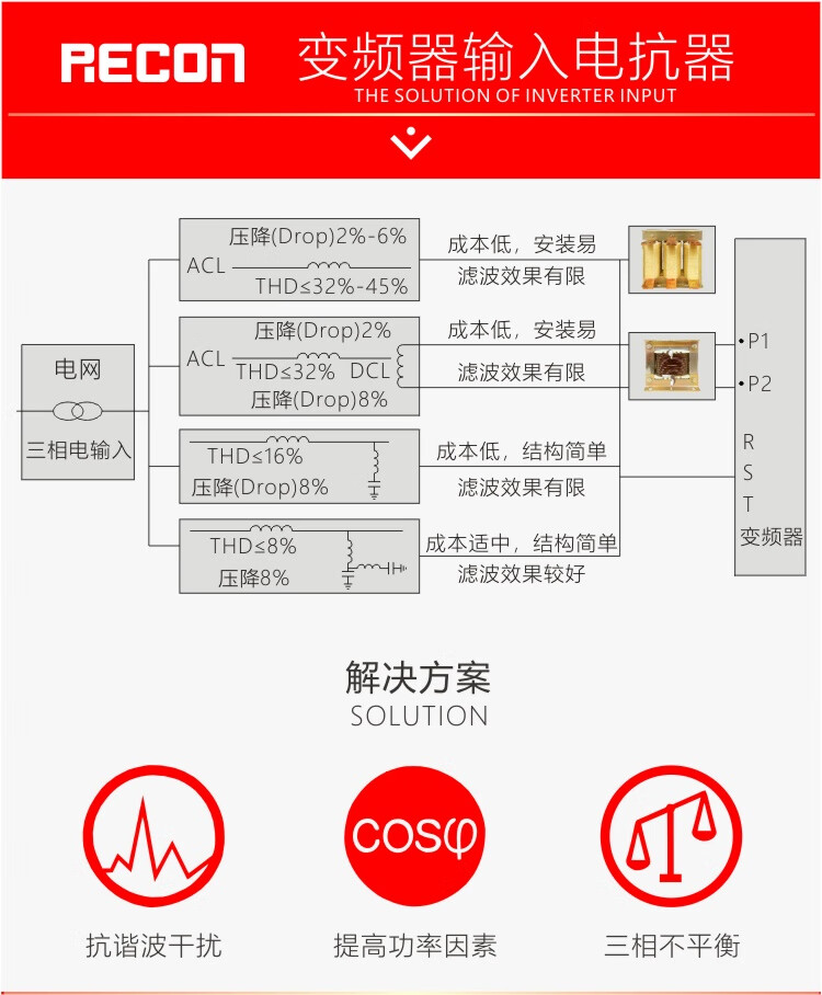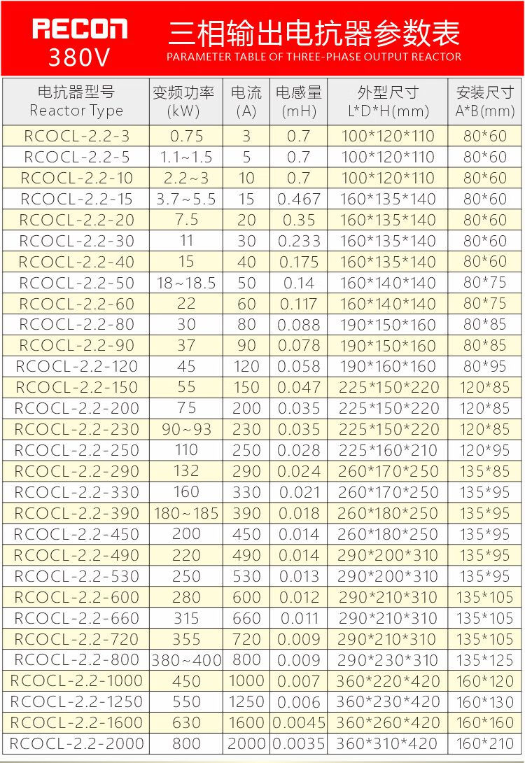 RECON Shanghai Ruikang 075220KW reactor three-phase input incoming line outgoing line output frequency converter input 0 points 751 points 5KW5A