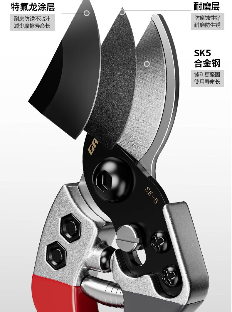 Jin Geyu Japanese original scissors, pruning shears, gardening scissors sk5, special scissors for pruning flowers and branches, fruit tree thick branch scissors, S type black blade scissors + heavy-duty pruning shears