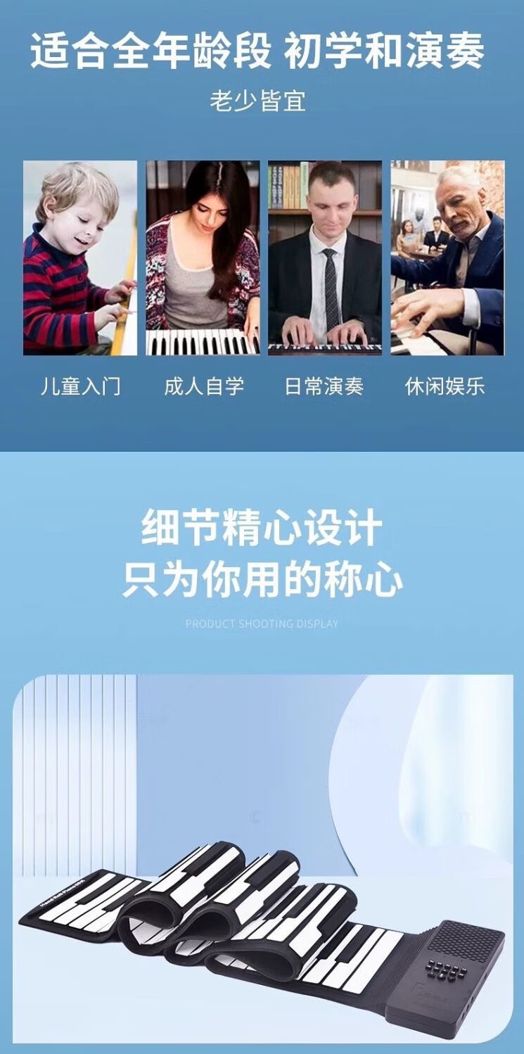 Yuanzu hand-rolled piano 88-key professional version foldable hand-rolled piano portable piano for beginners portable electric piano roll 88-key (with digital display) standard model + sticker + pedal + piano bag digital dual display | comes with external voice