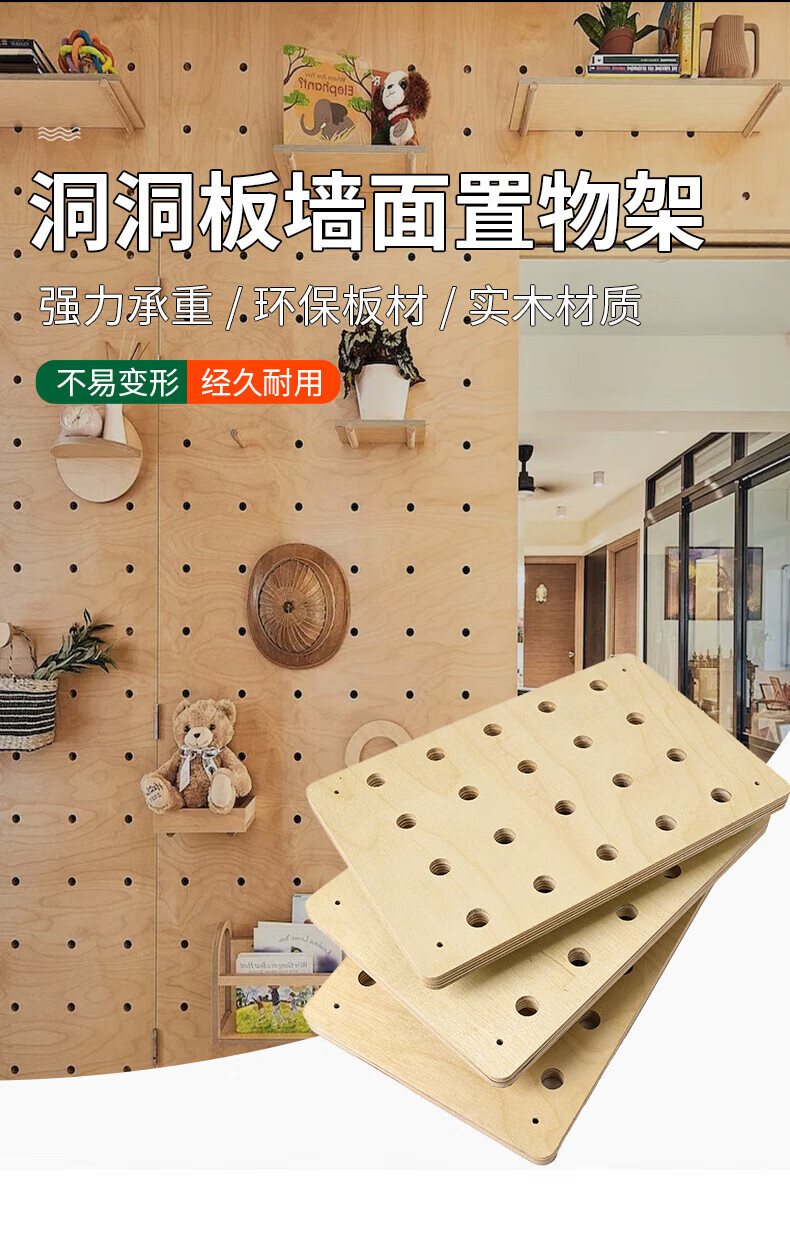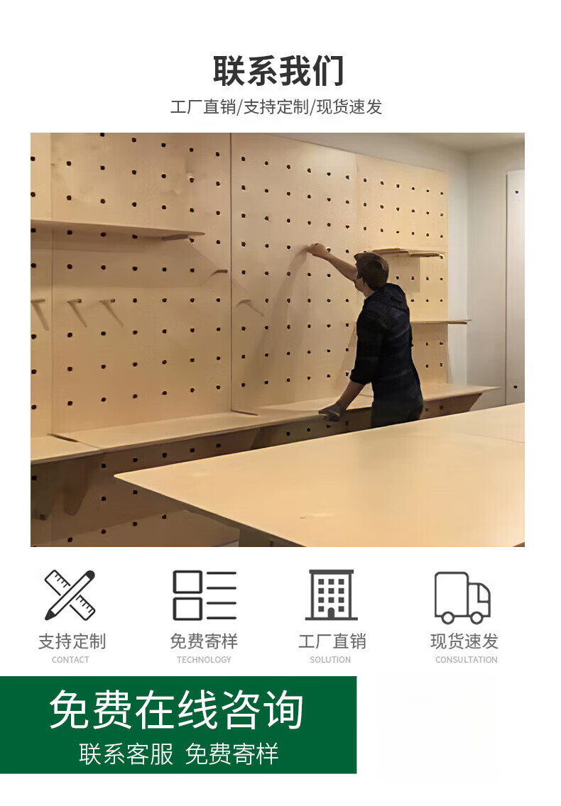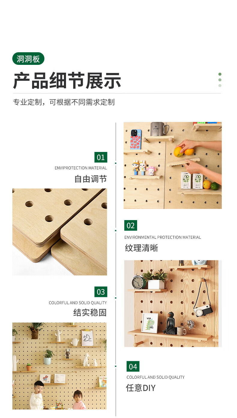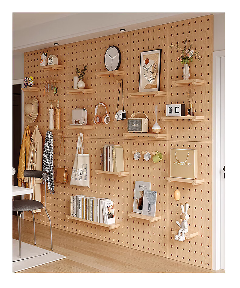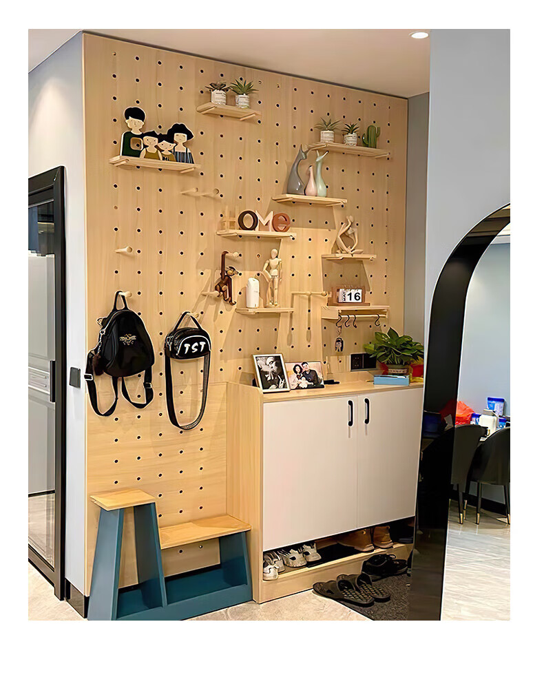 Shantou Lincun birch ocean board perforated board custom solid wood rack hanging board wall entrance door entrance decorative wall display rack perforated board custom production on demand