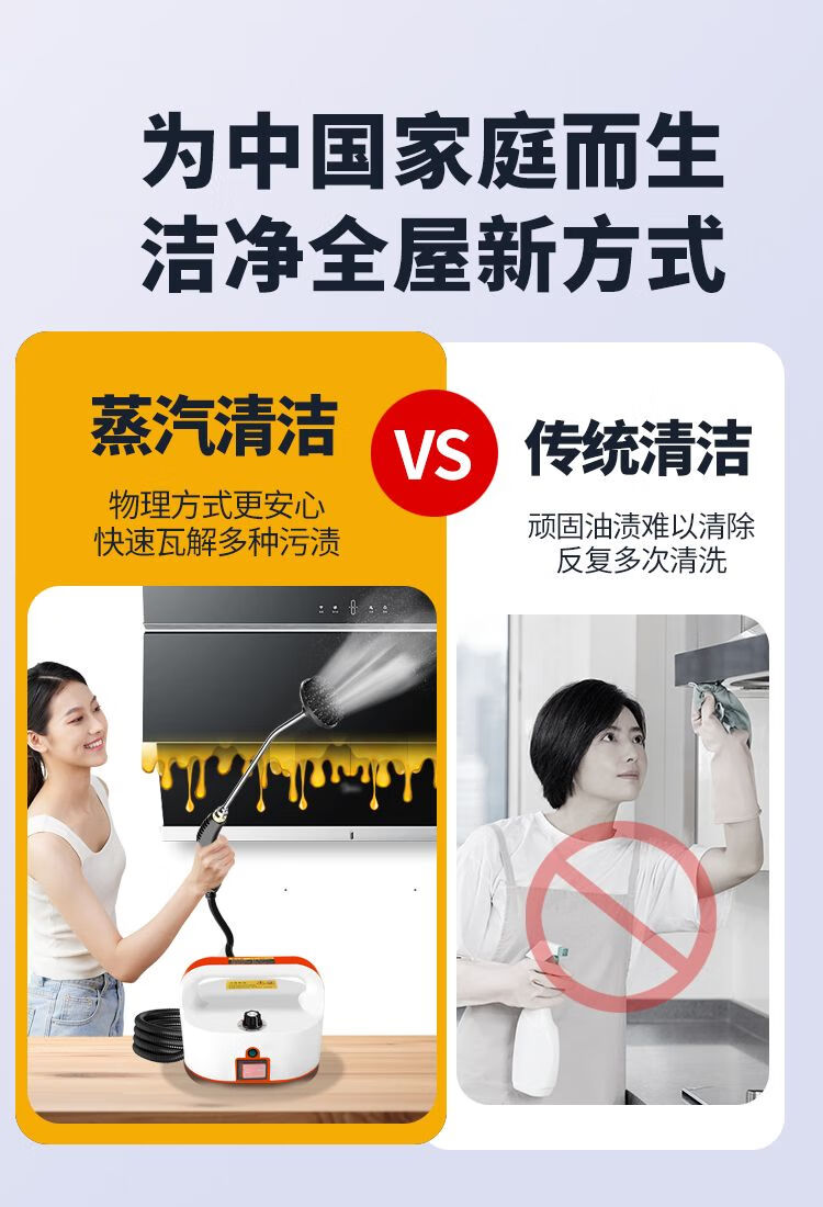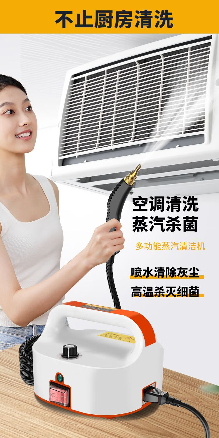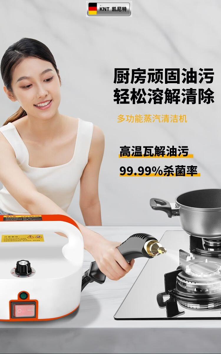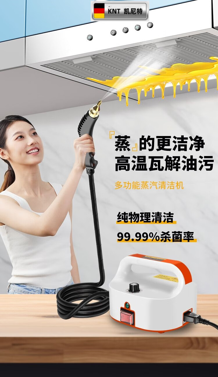 Kenit High Temperature Steam Cleaner Car Air Conditioner Kitchen Range Hood High Pressure Household Cleaning Artifact White - Safety Upgrade Water and Electricity Separation Model + Whole House Cleaning Set
