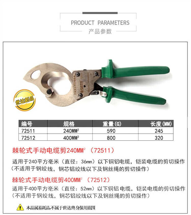 TMJD MISS tool 240MM/400MM ratcheting manual cable cutter 72511 72512SN2575 72511 ratcheting manual cable cutter 240MM