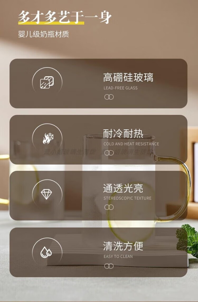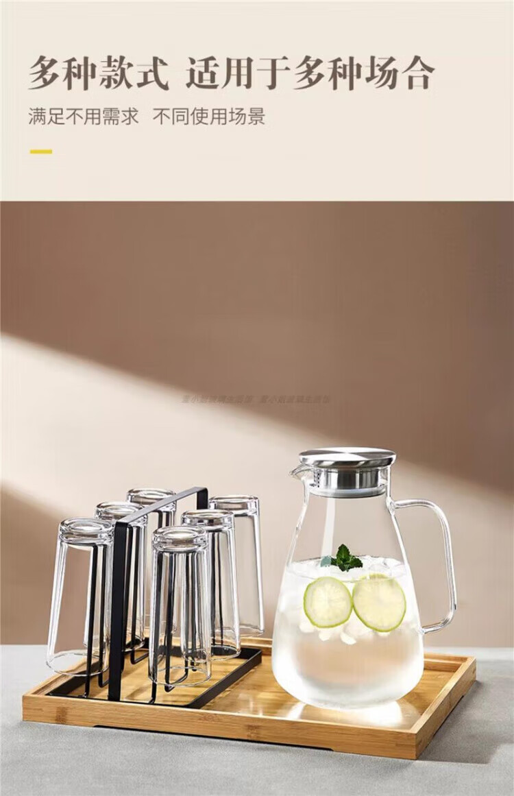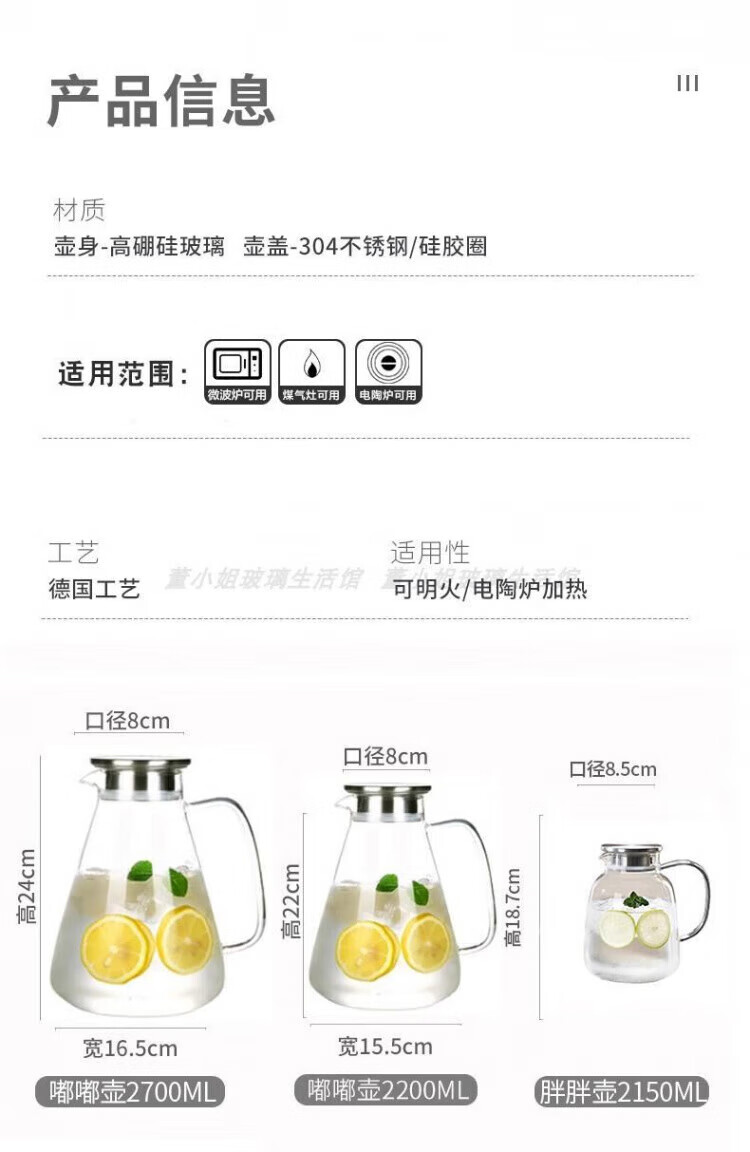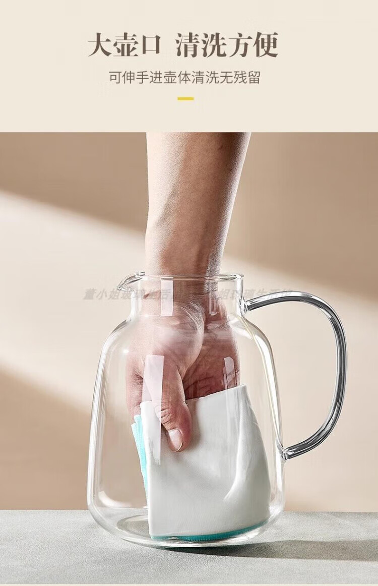 He Jiangong German brand glass cold water kettle, high temperature resistant cold water kettle, summer household large-capacity cold water cup set, anti-explosion, fat pot + stainless steel lid, boiling water directly into 1800ml