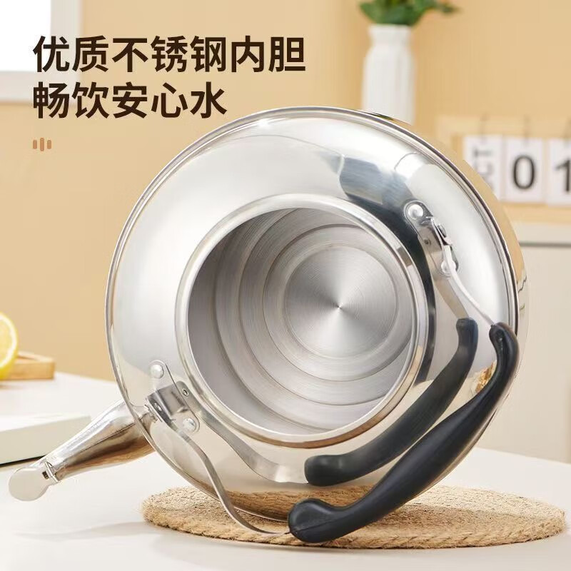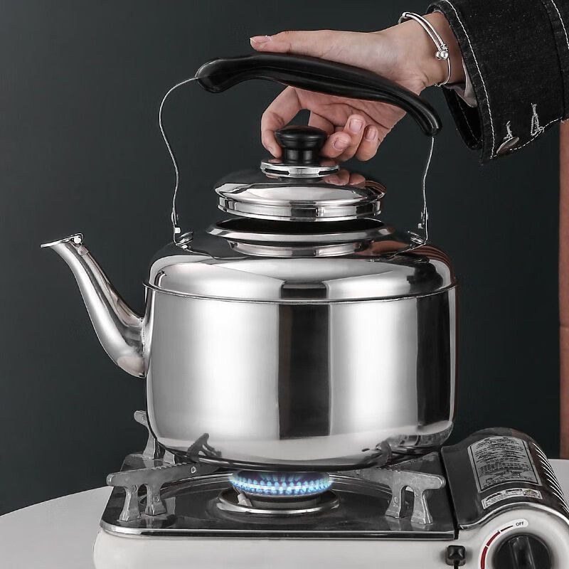 Stainless steel whistling kettle, whistling kettle, large capacity kettle, household gas induction cooker, coal-burning stove, general purpose, holds about 7.2 catties of water, comes with cleaning cloth + descaling agent 4L