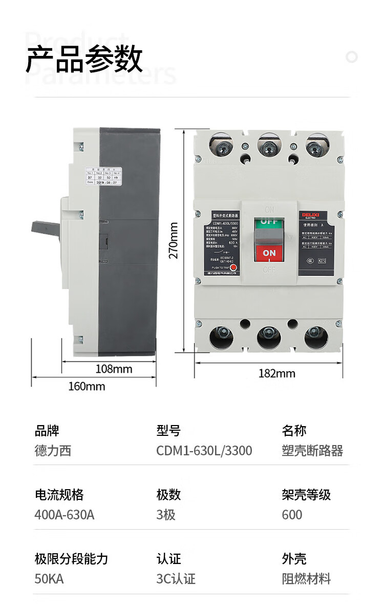CDM1-630L/3300 molded case circuit breaker 400A 500A 630A three-phase main switch 500A 3P