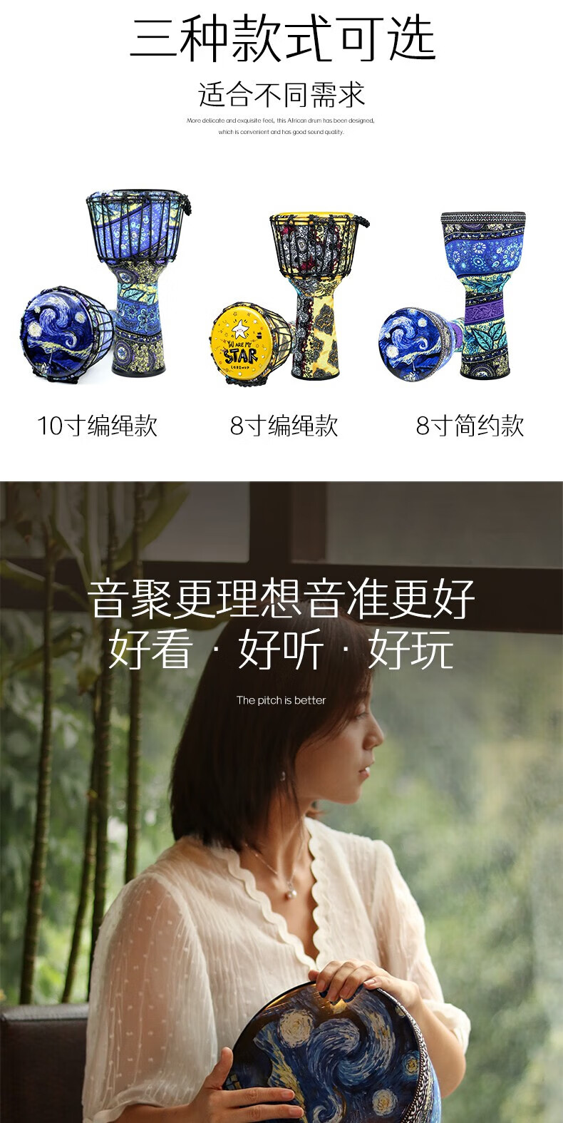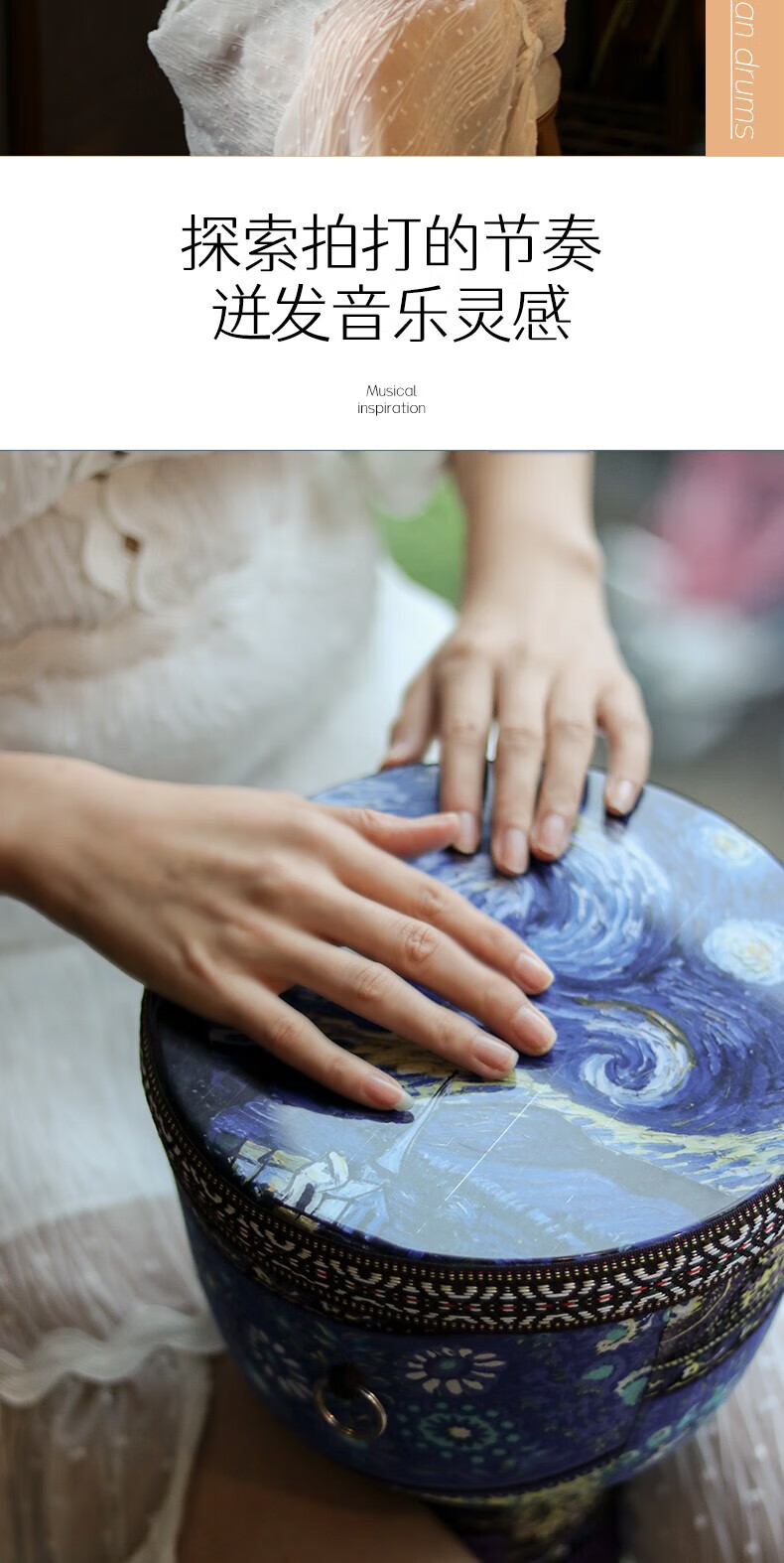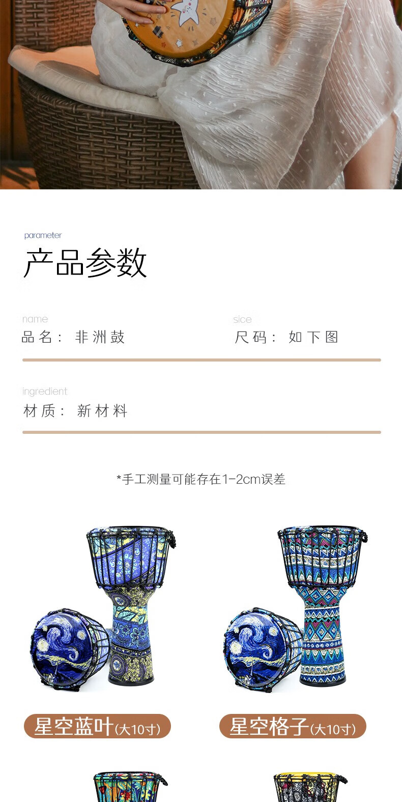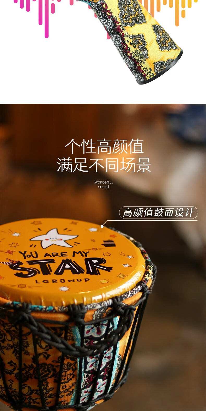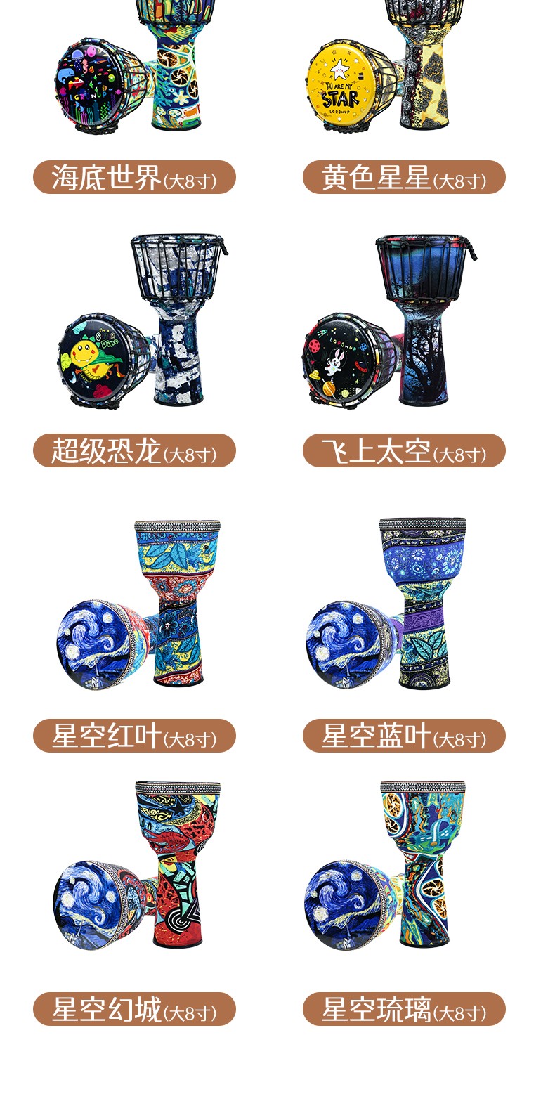 Yuan ethnic African drum 8-inch children's drum instrument hand drum kindergarten special ethnic drum primary school students percussion instrument hand drum large 8-inch starry sky blue leaves + gifts safe and harmless recommended for children/beginners