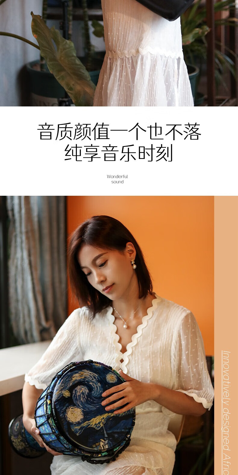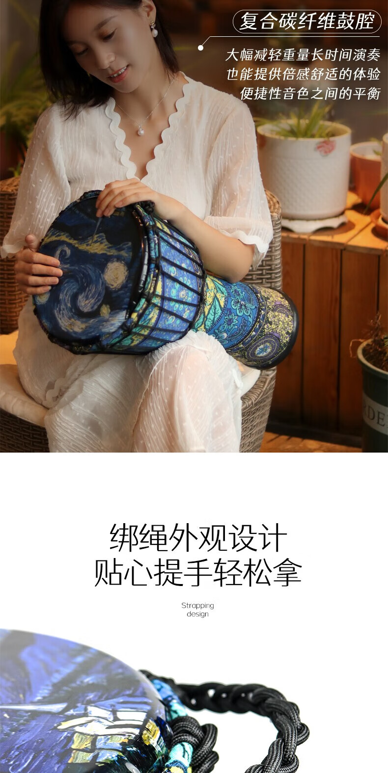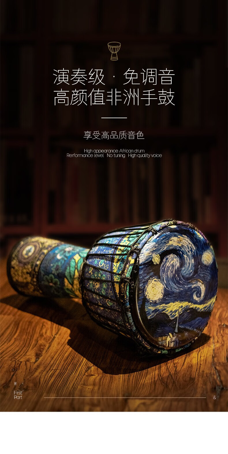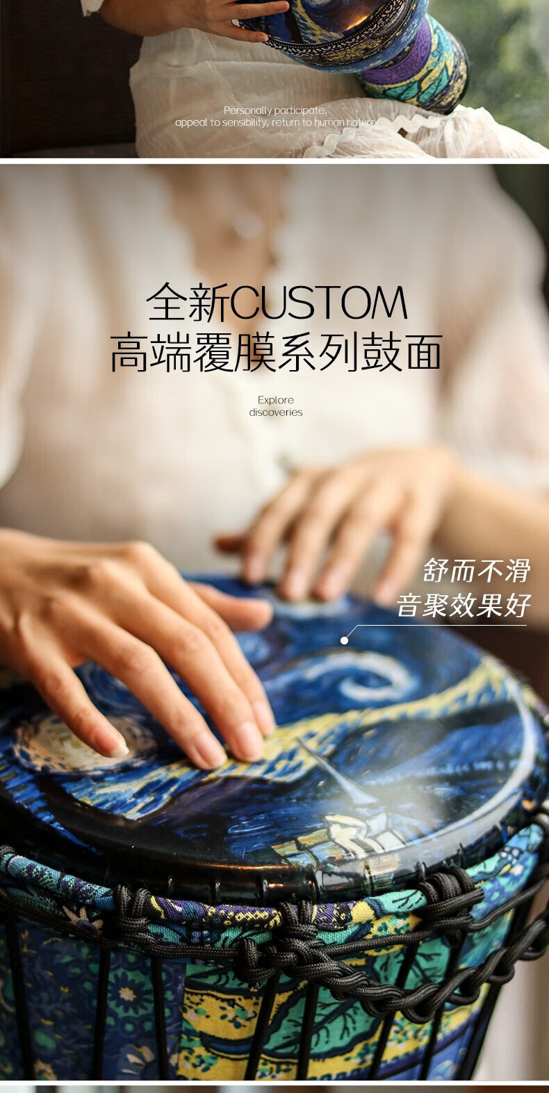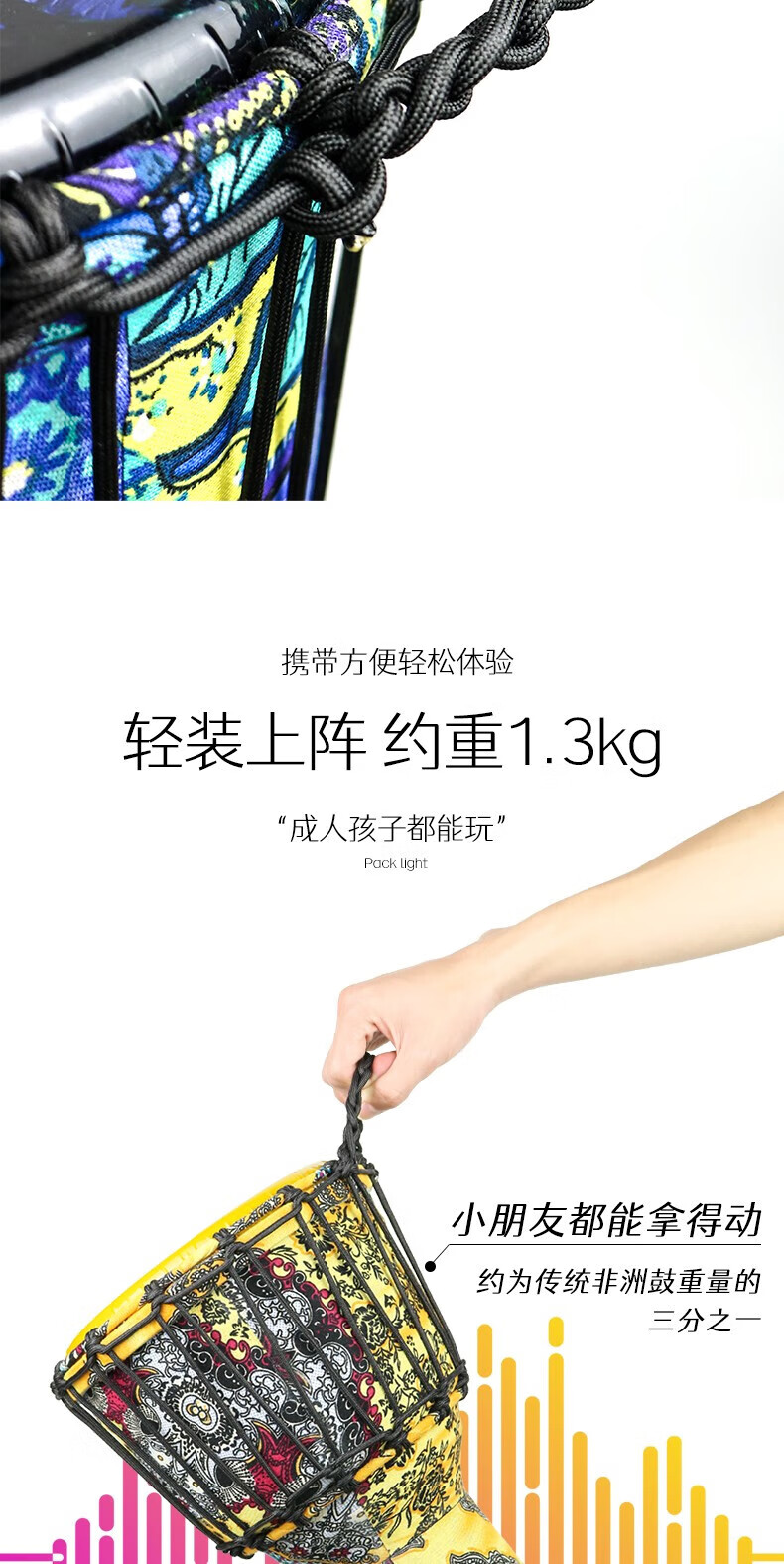 Yuan ethnic African drum 8-inch children's drum instrument hand drum kindergarten special ethnic drum primary school students percussion instrument hand drum large 8-inch starry sky blue leaves + gifts safe and harmless recommended for children/beginners