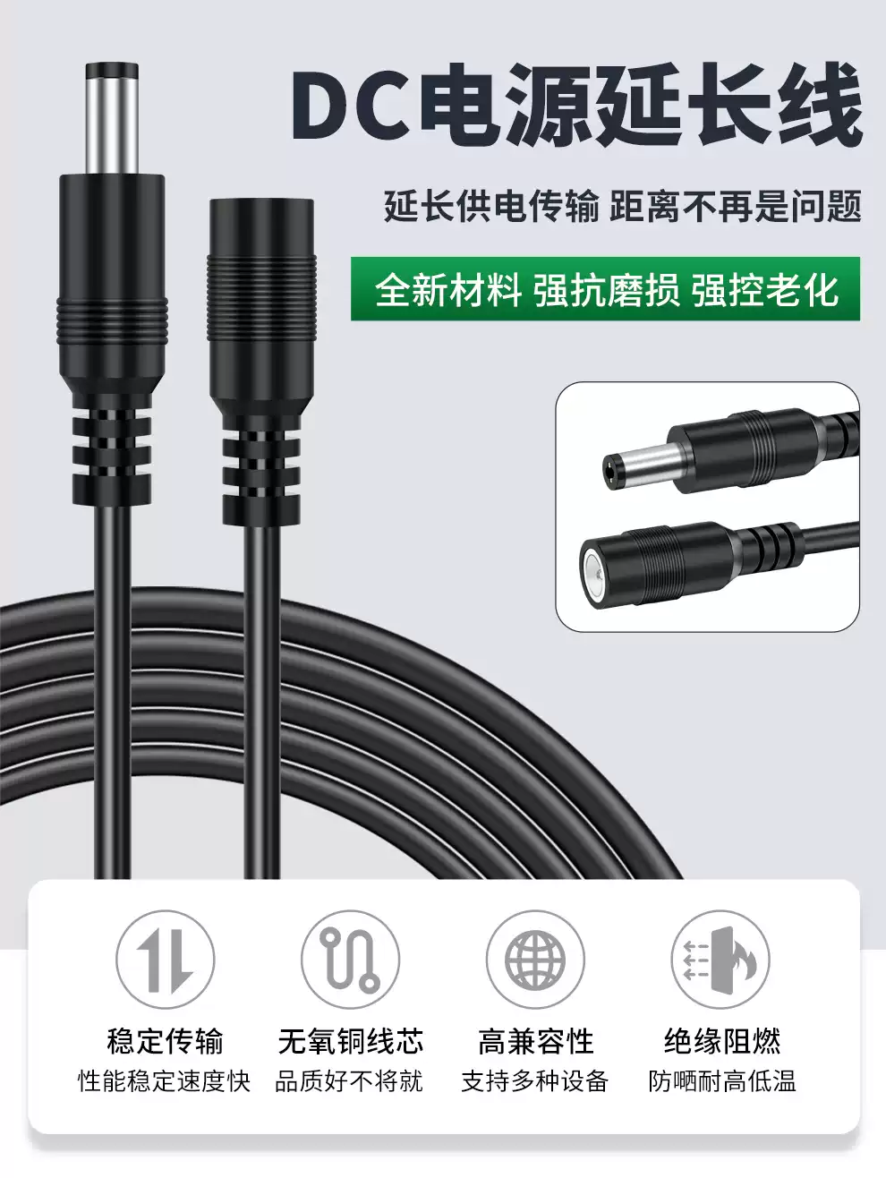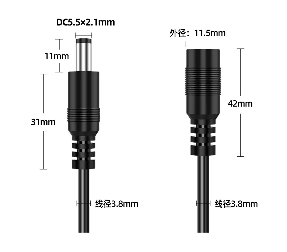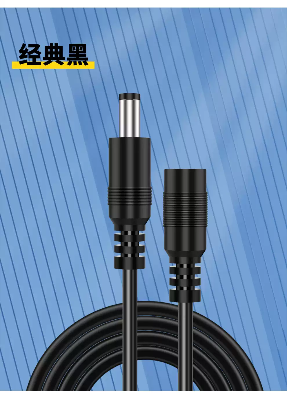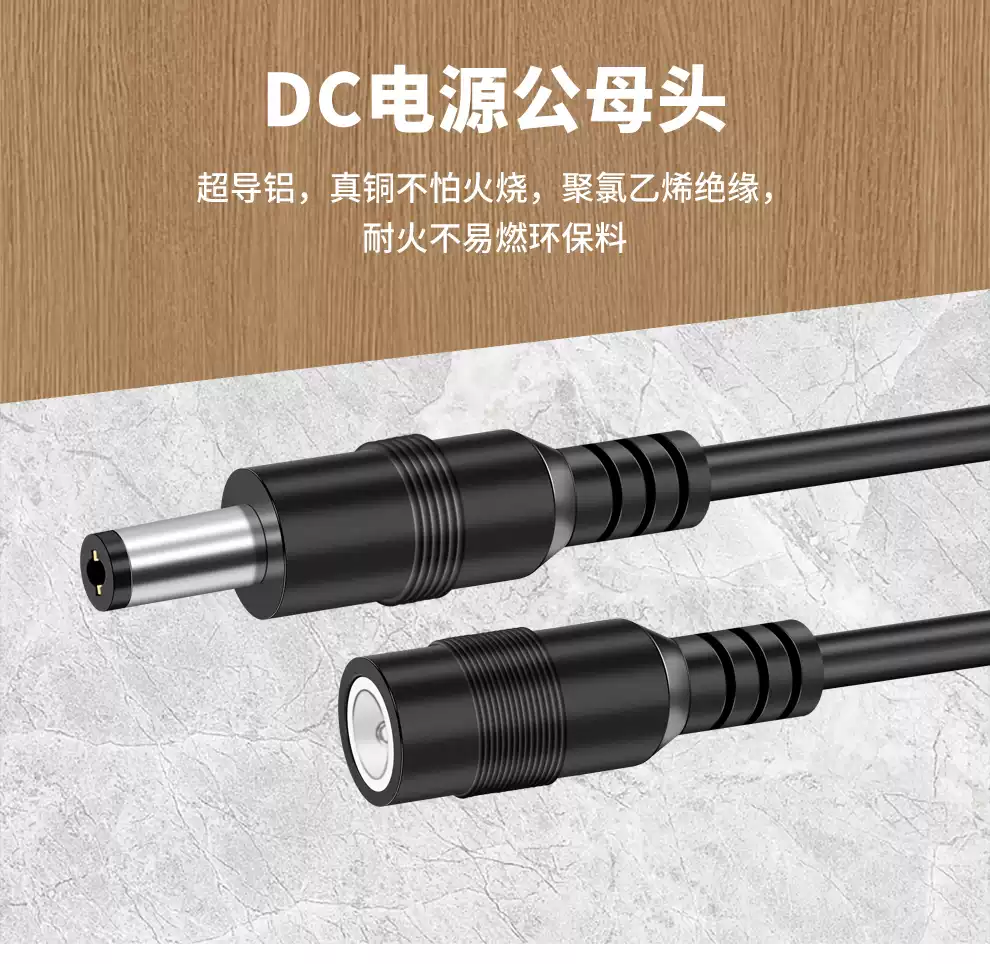 12V female cable male DC5.5*2.1mm connecting cable plug monitoring power supply extension cable camera extension cable black 5 meters