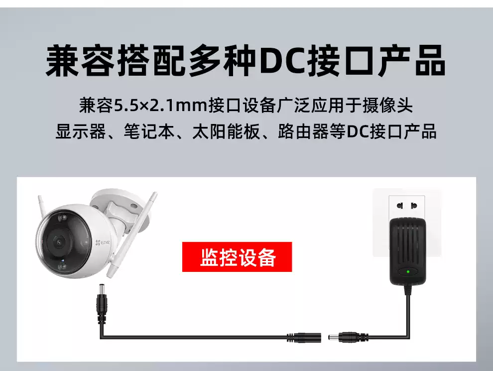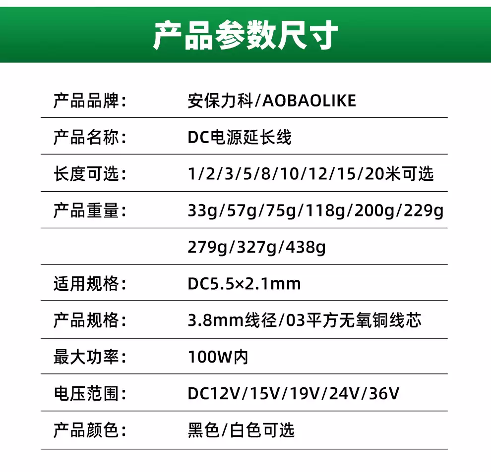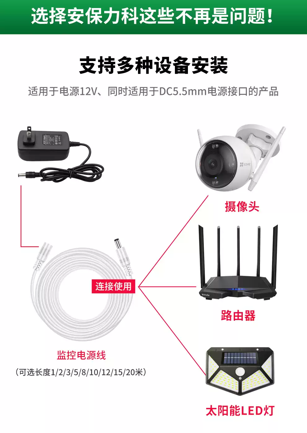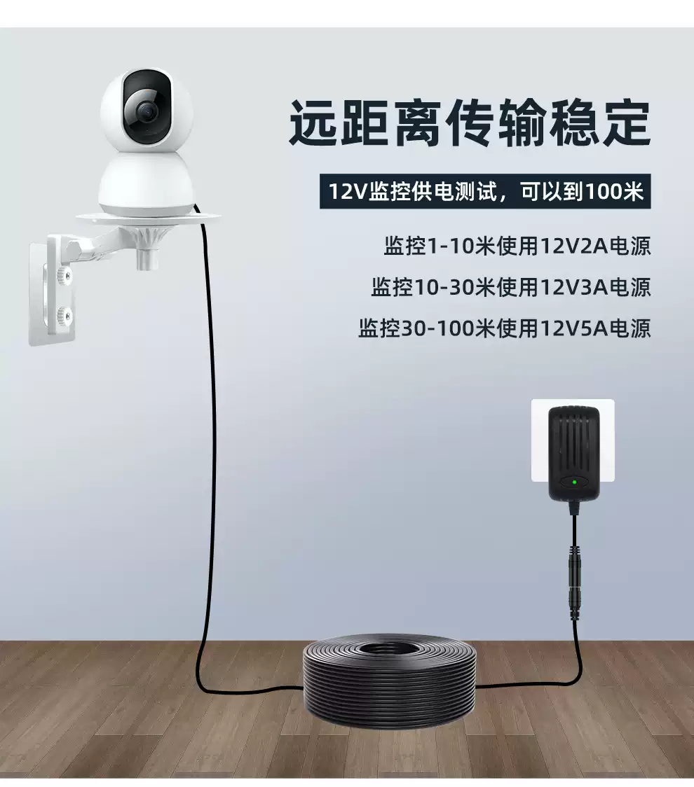 12V female cable male DC5.5*2.1mm connecting cable plug monitoring power supply extension cable camera extension cable black 5 meters