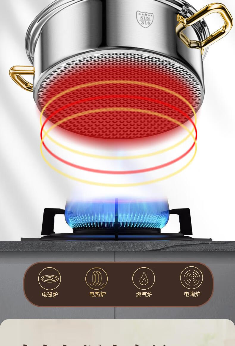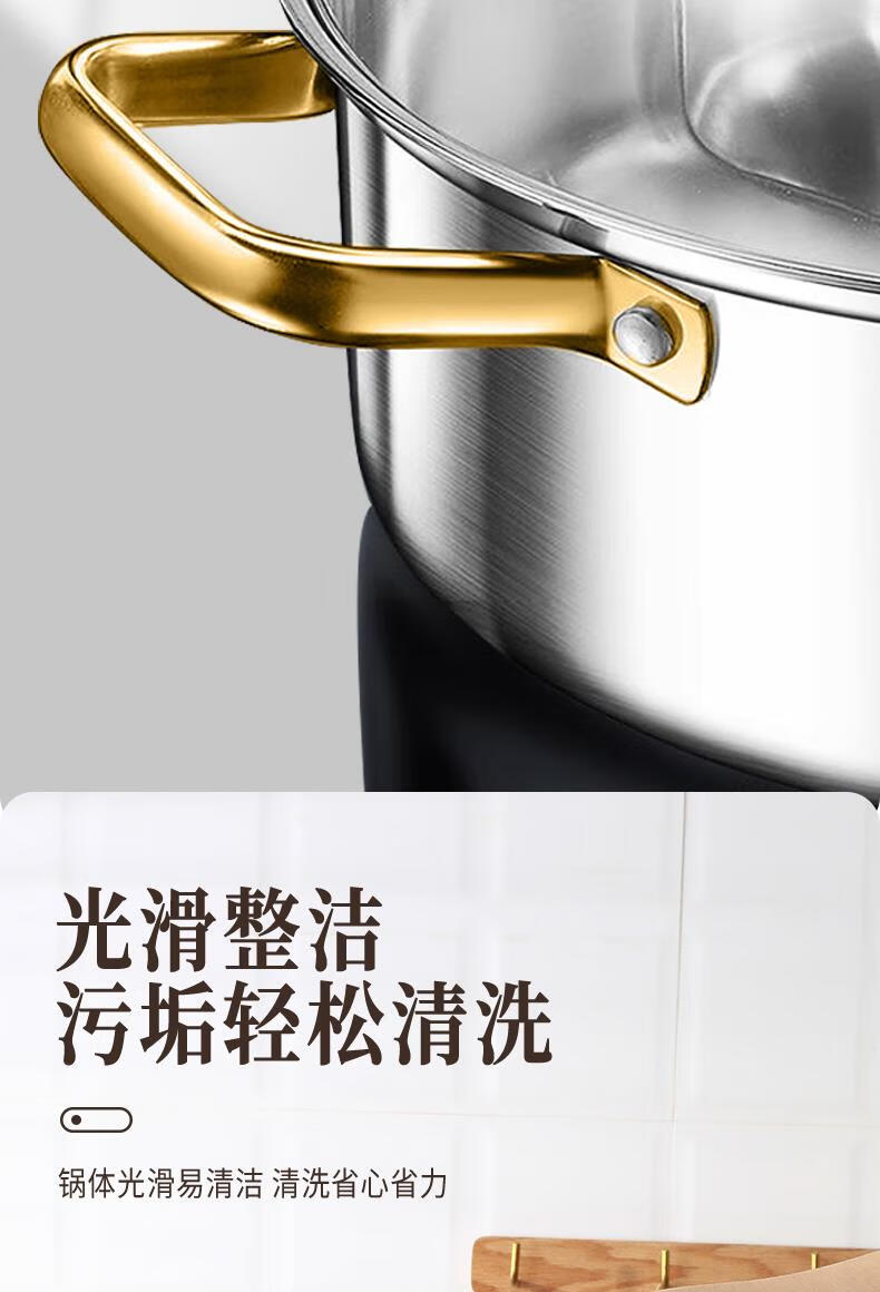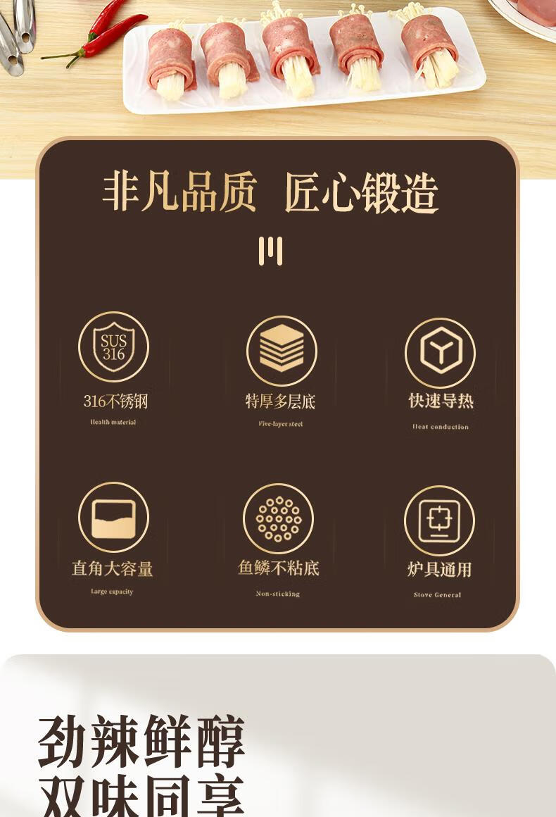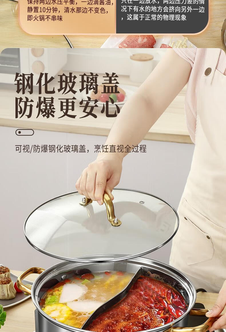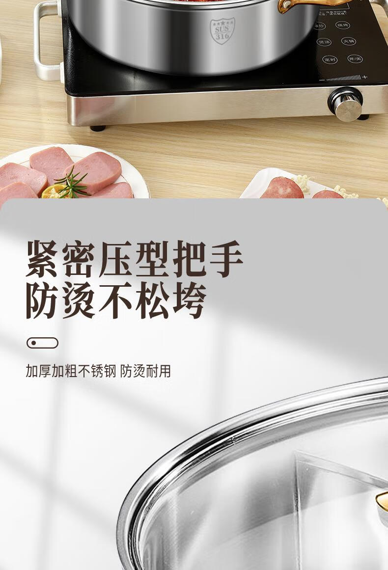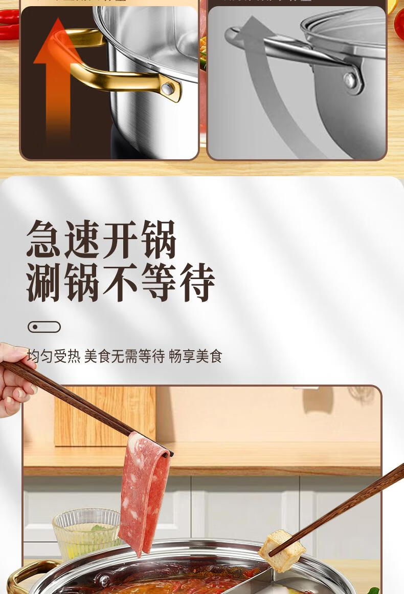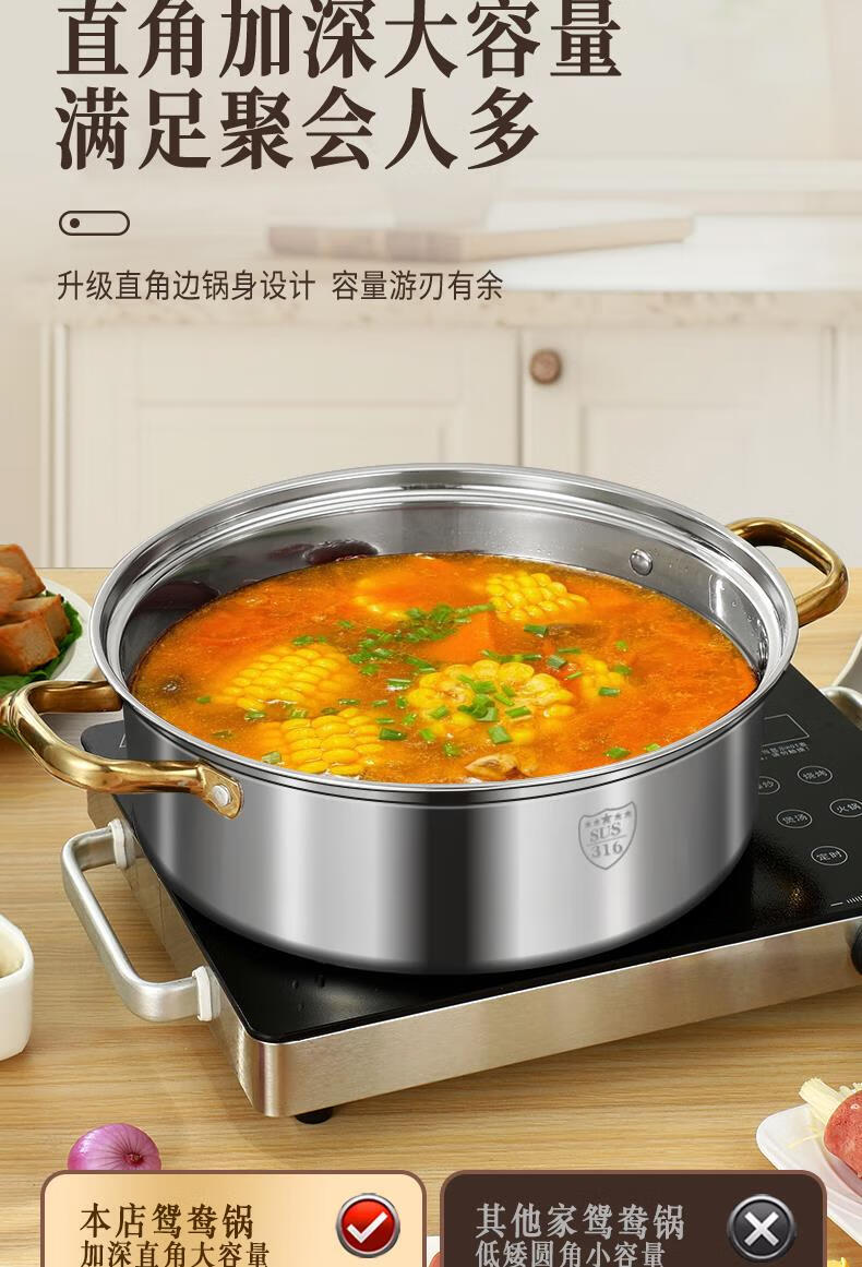 Fat Donglai's same style 316 stainless steel mandarin duck pot hot pot household induction cooker thickened special hot pot pot pot thickened 316 mandarin duck pot suitable for 6-10 people comes with a soup spoon and a colander 32cm