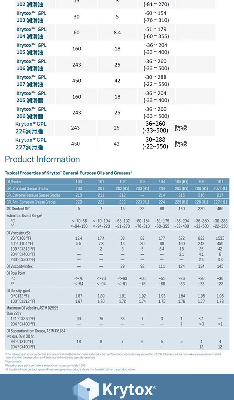 DuPont Lubricant KRYTOX GPL205 206 227 Chemours PFPE perfluoropolyether grease 1kg GPL105 10g/bottle