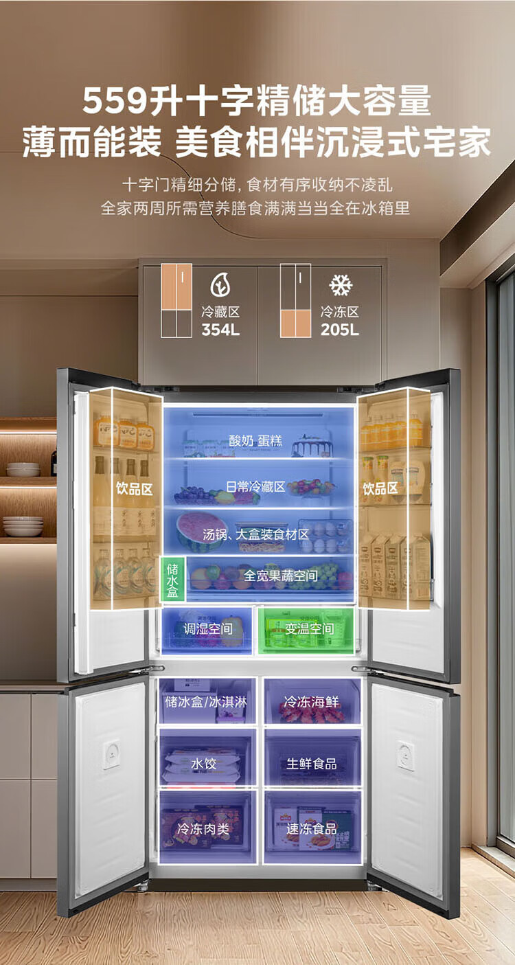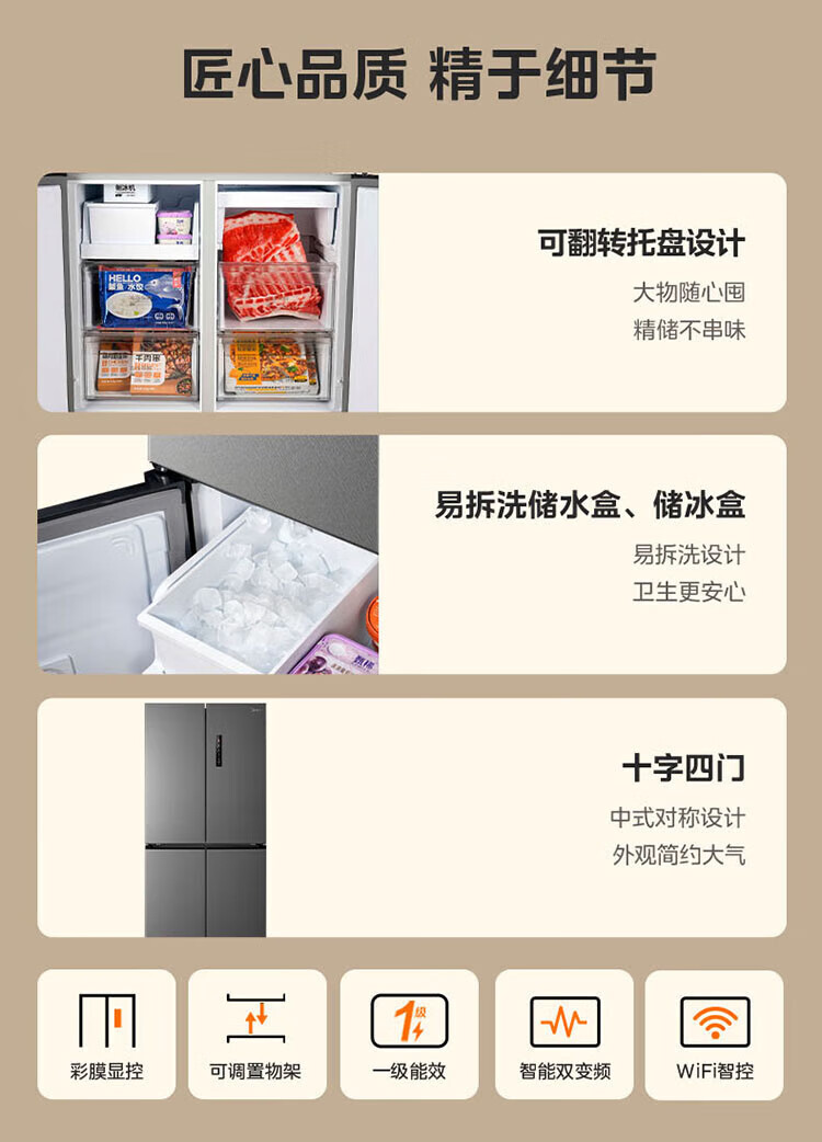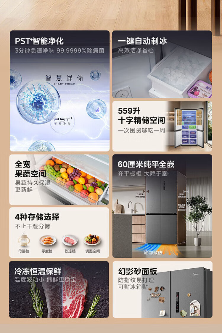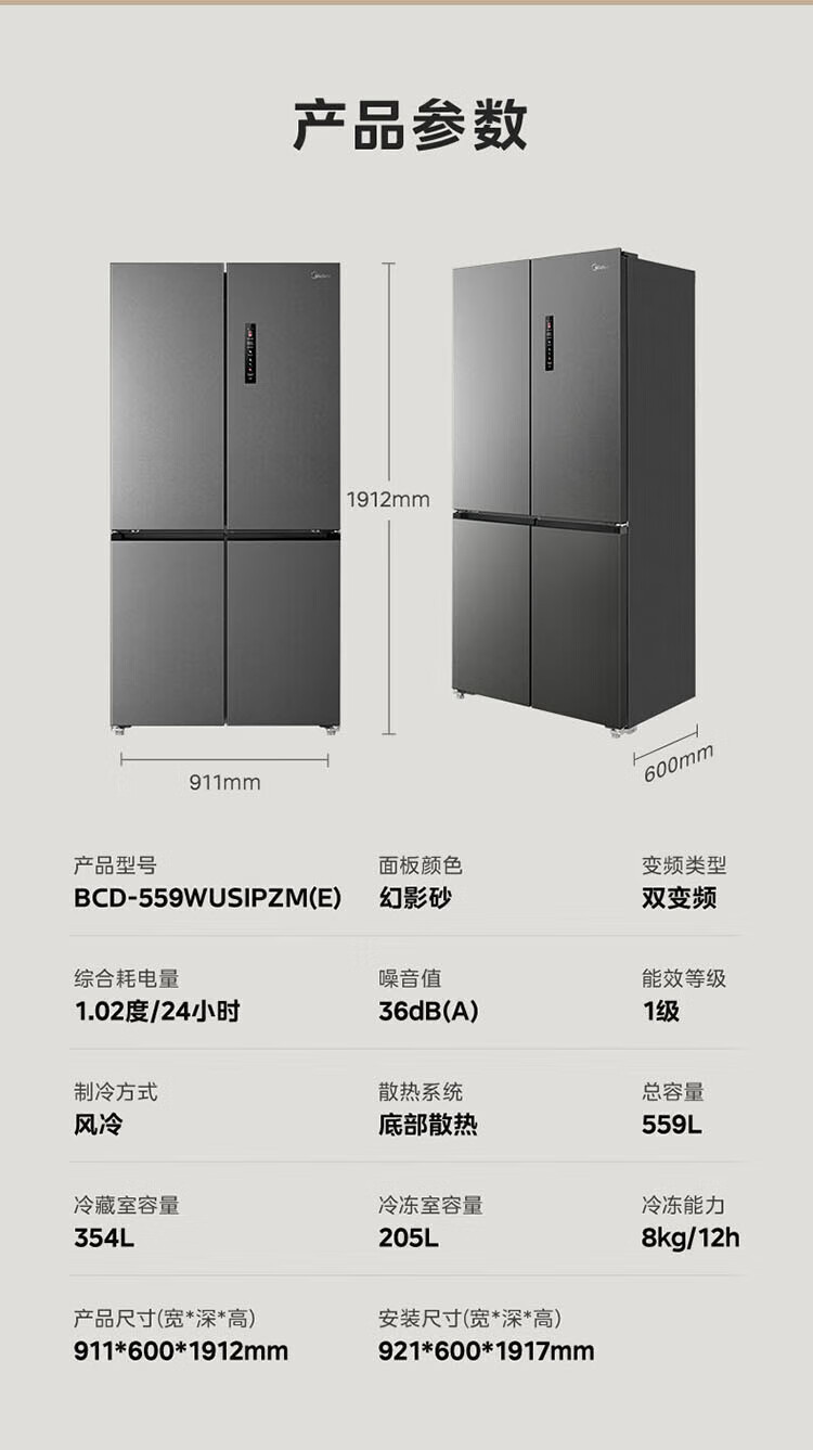 Midea 559 liter cross four-door embedded fully embedded ultra-thin automatic ice making bottom cooling refrigerator large capacity refrigerator BCD-559WUSIPZM(E) BCD-559WUSIPZM(E)