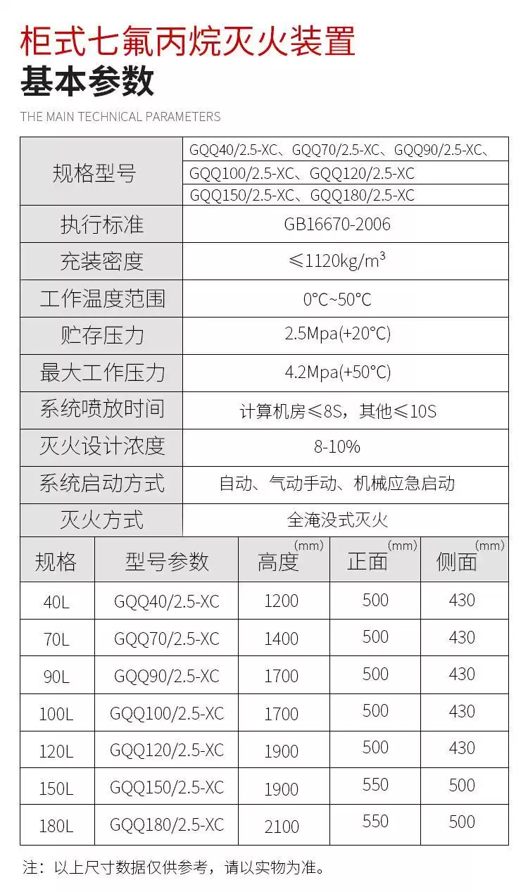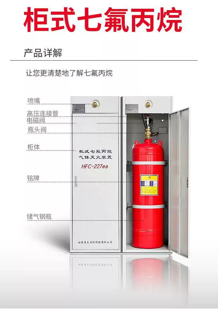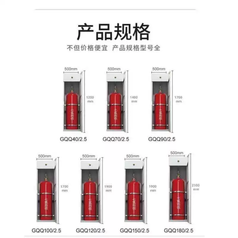 Heptafluoropropane cabinet fire extinguishing device, clean gas automatic fire extinguishing system, heptafluoropropane fire extinguisher manufacturer, single cabinet type GQQ70/2.5
