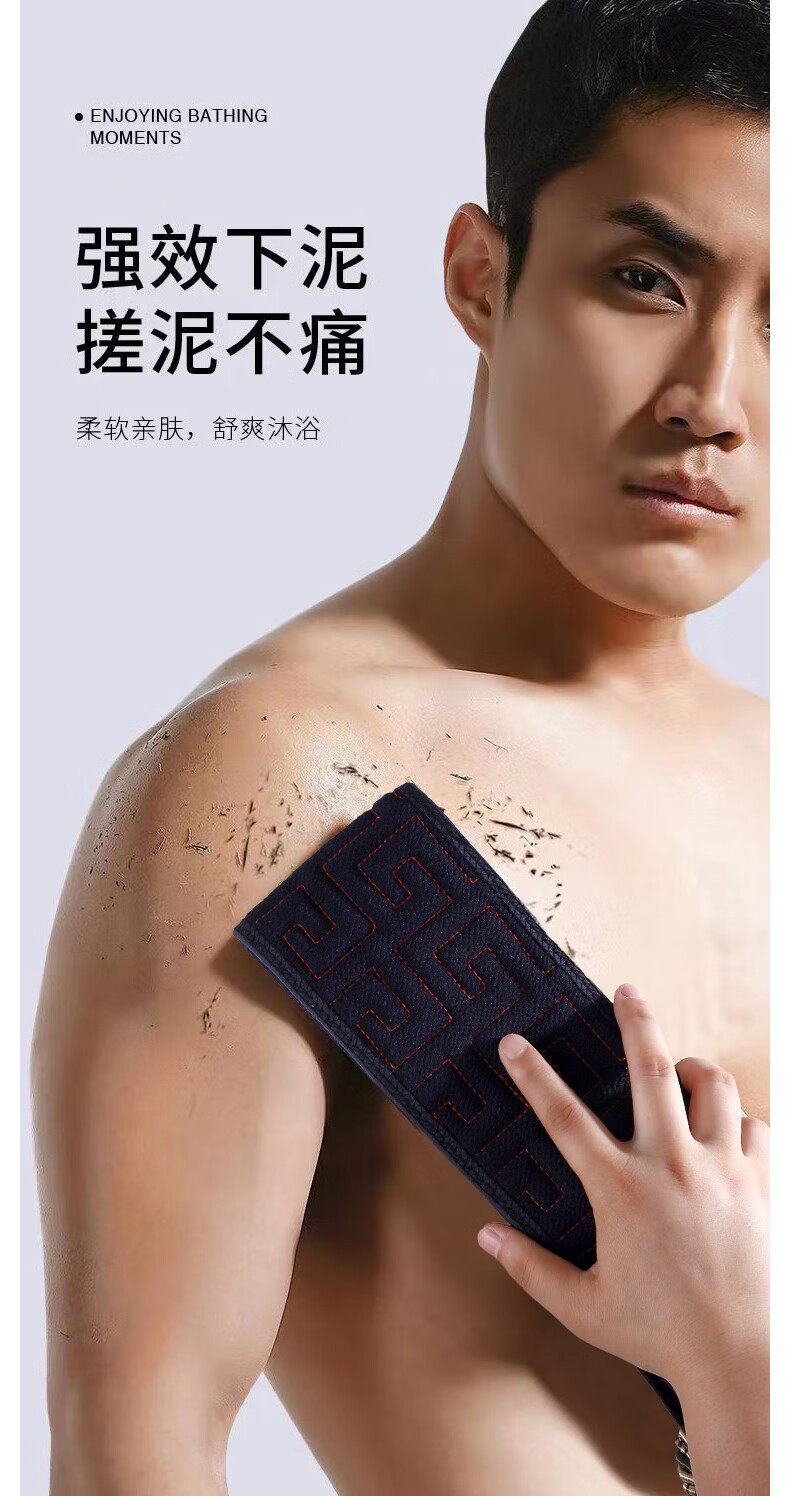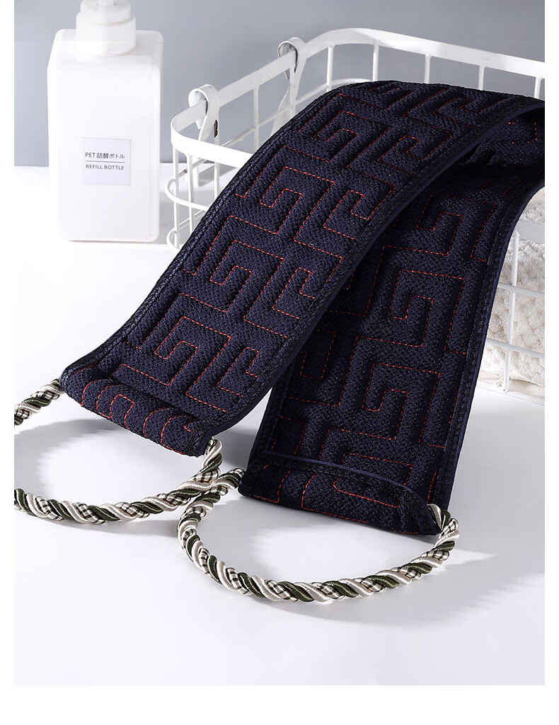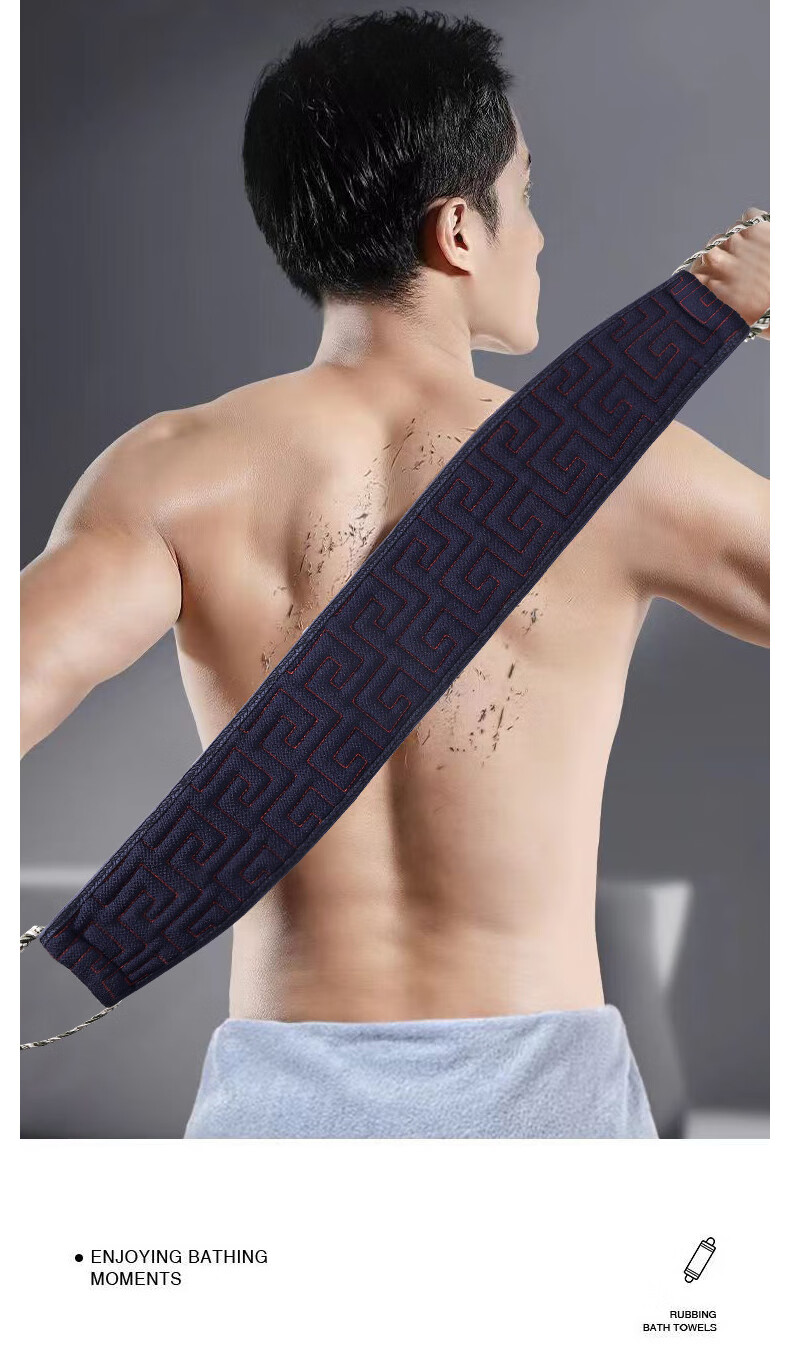 Men's bath towel, long strip of back rub, no need to ask for help, powerful mud rub artifact for home bathing and back rub, double-sided thickness pull ring, upgraded, not easy to break, black