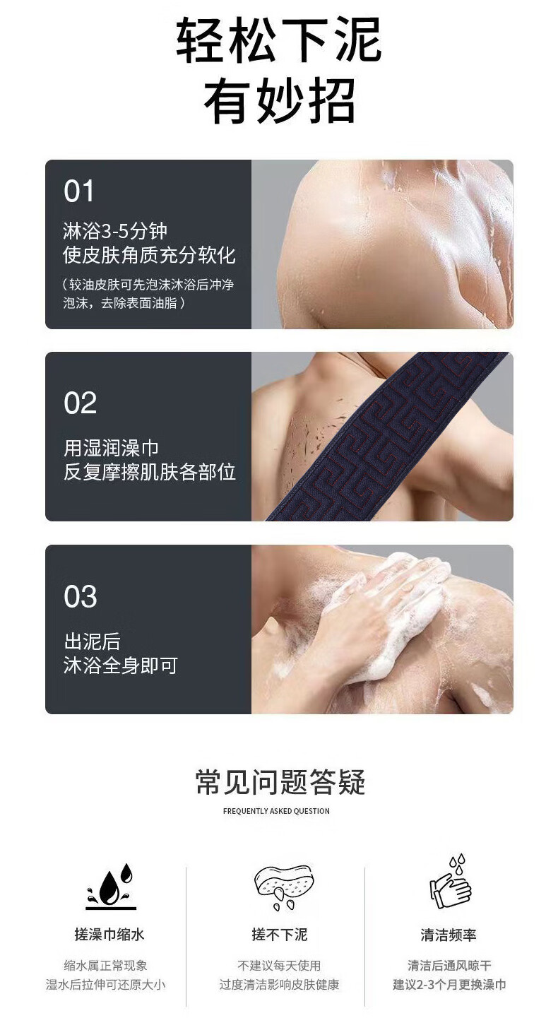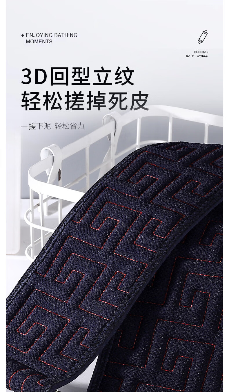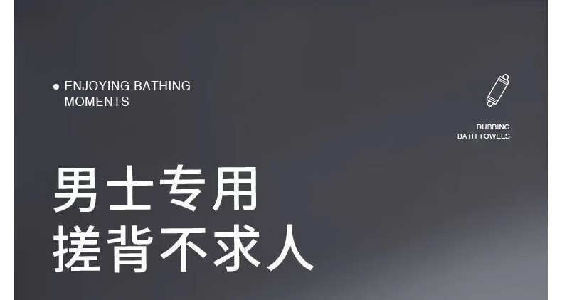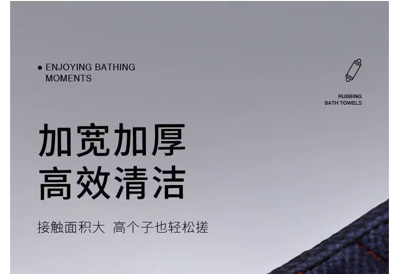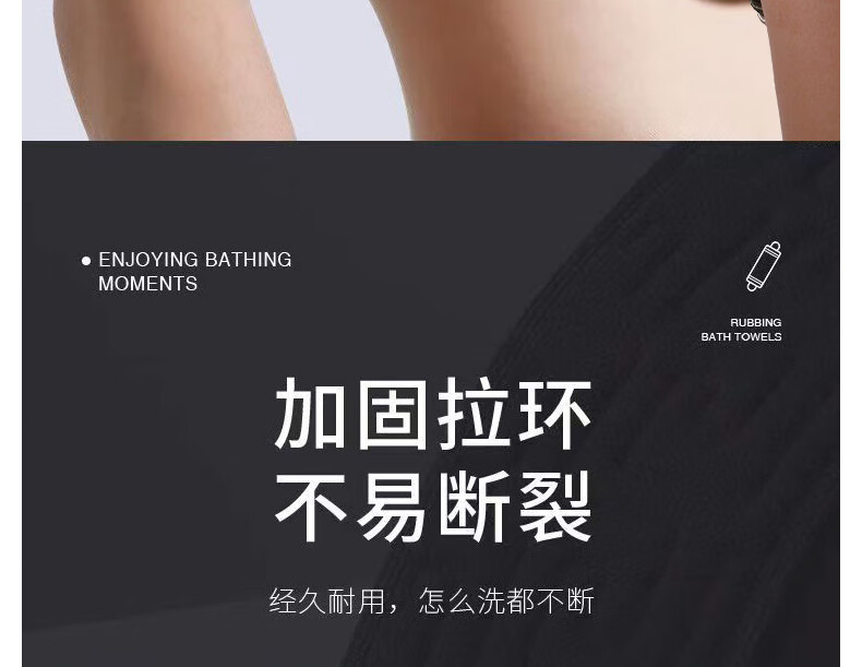 Men's bath towel, long strip of back rub, no need to ask for help, powerful mud rub artifact for home bathing and back rub, double-sided thickness pull ring, upgraded, not easy to break, black