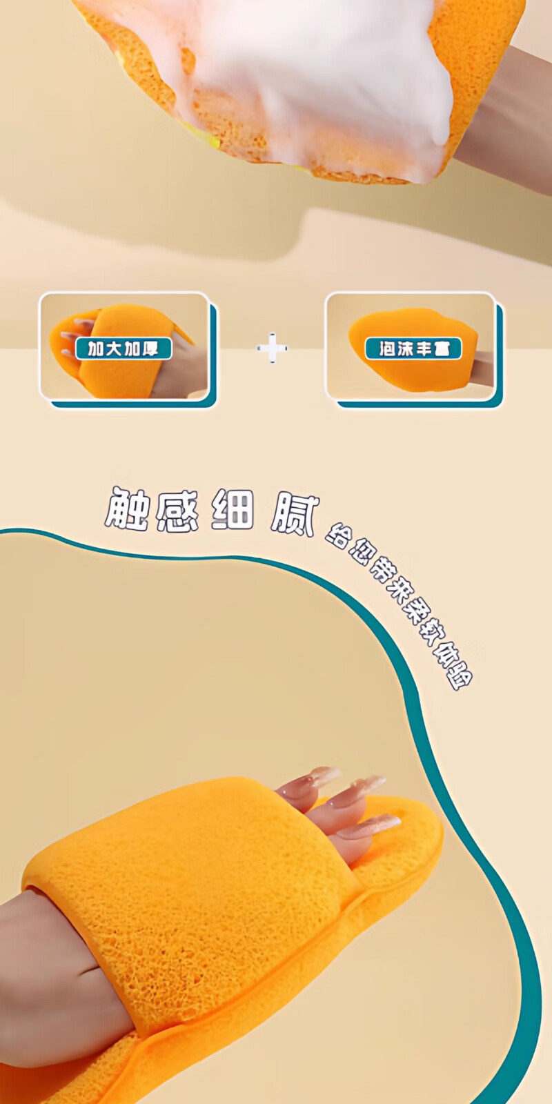 Extra large slippers, thick gloves, face wash sponge, cleansing sponge, cleansing face, deep scrub, bath towel, orange + pine green, 2 pack