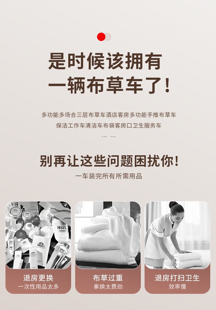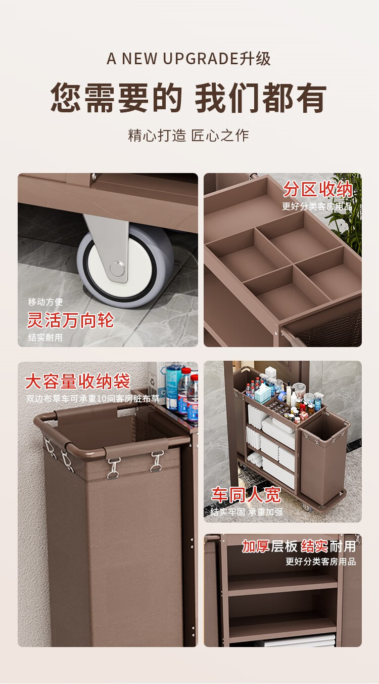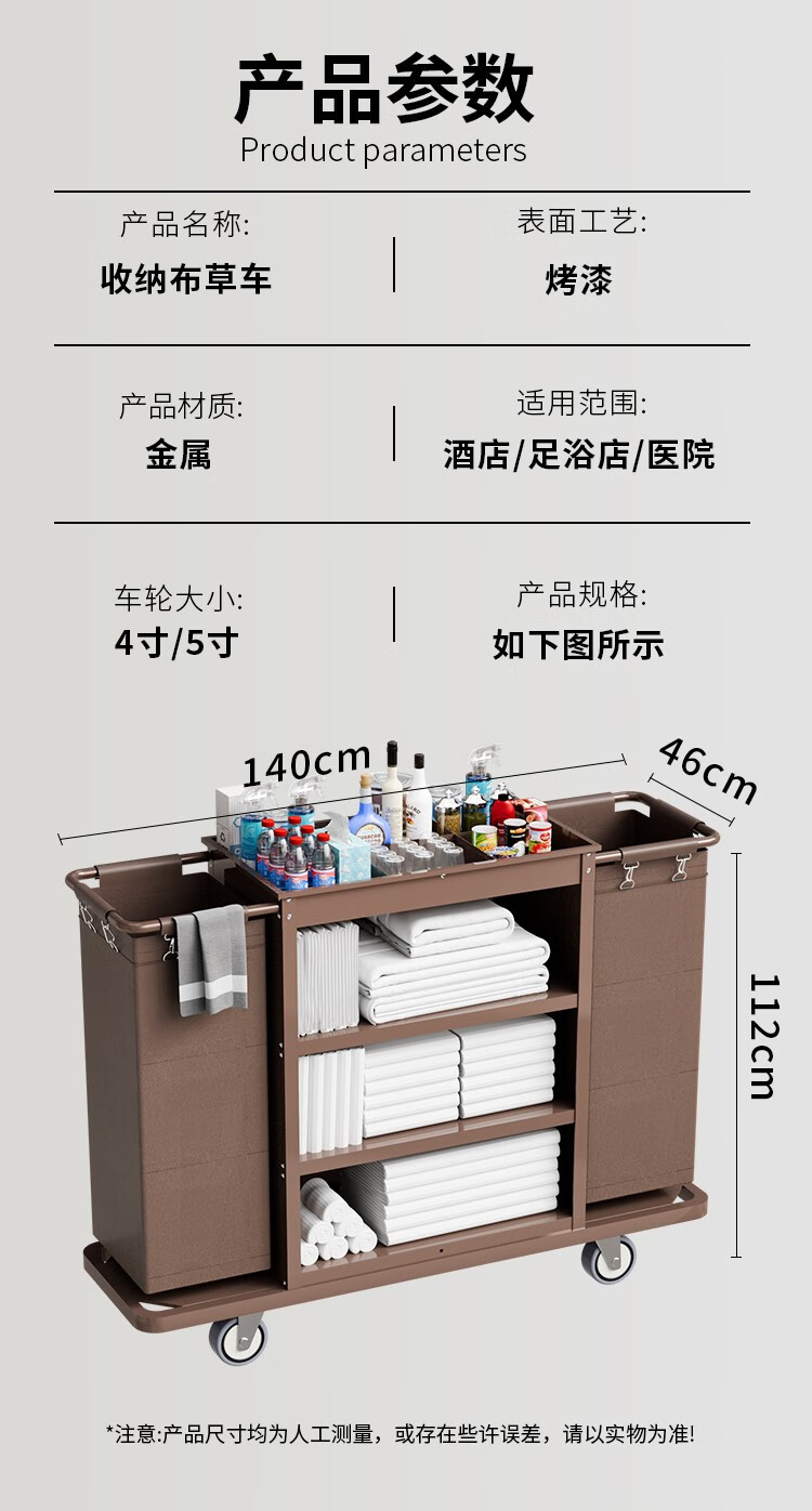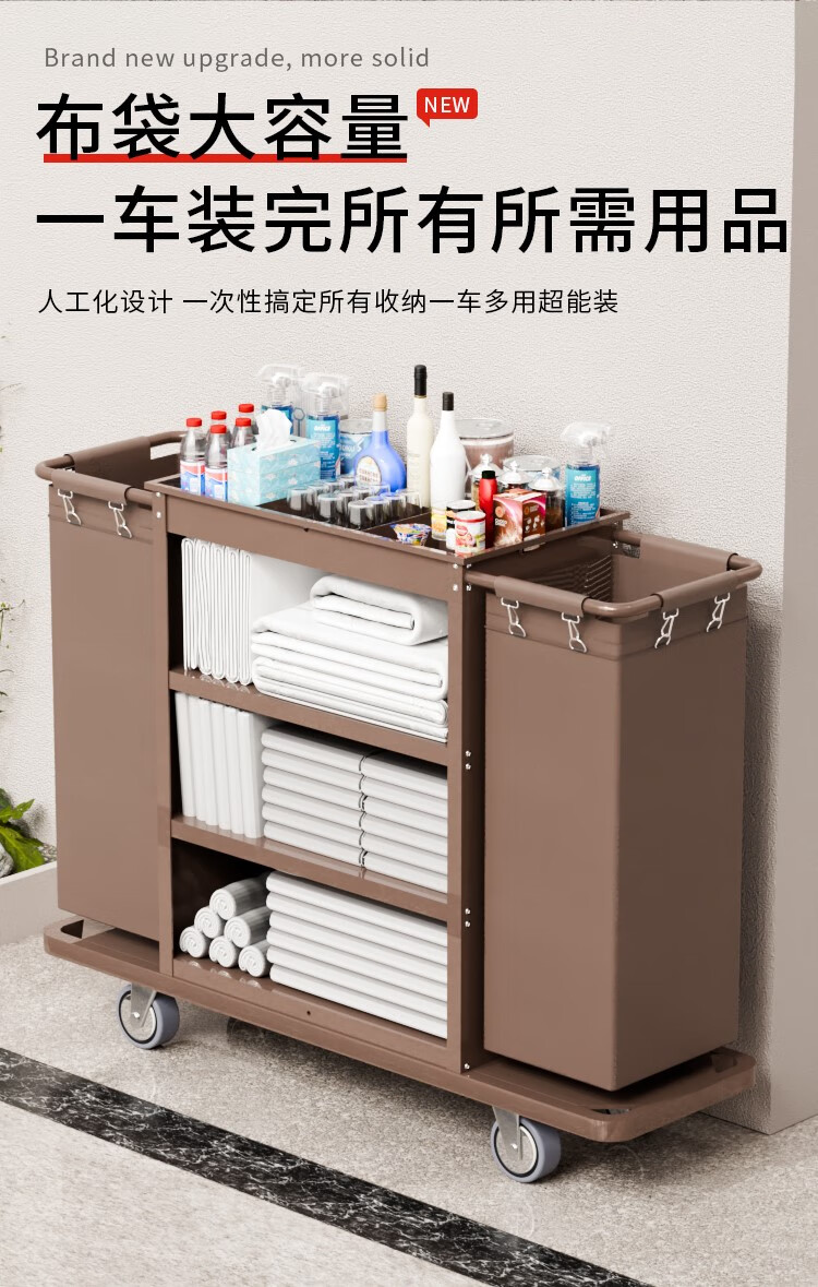 Special linen cart for hotel rooms, cleaning cart, multi-functional trolley, cleaning service cart, work cart, 4-inch small single-sided wheel, 1 long cloth