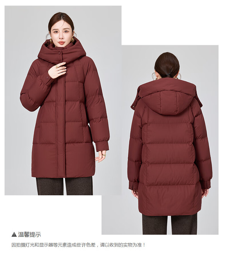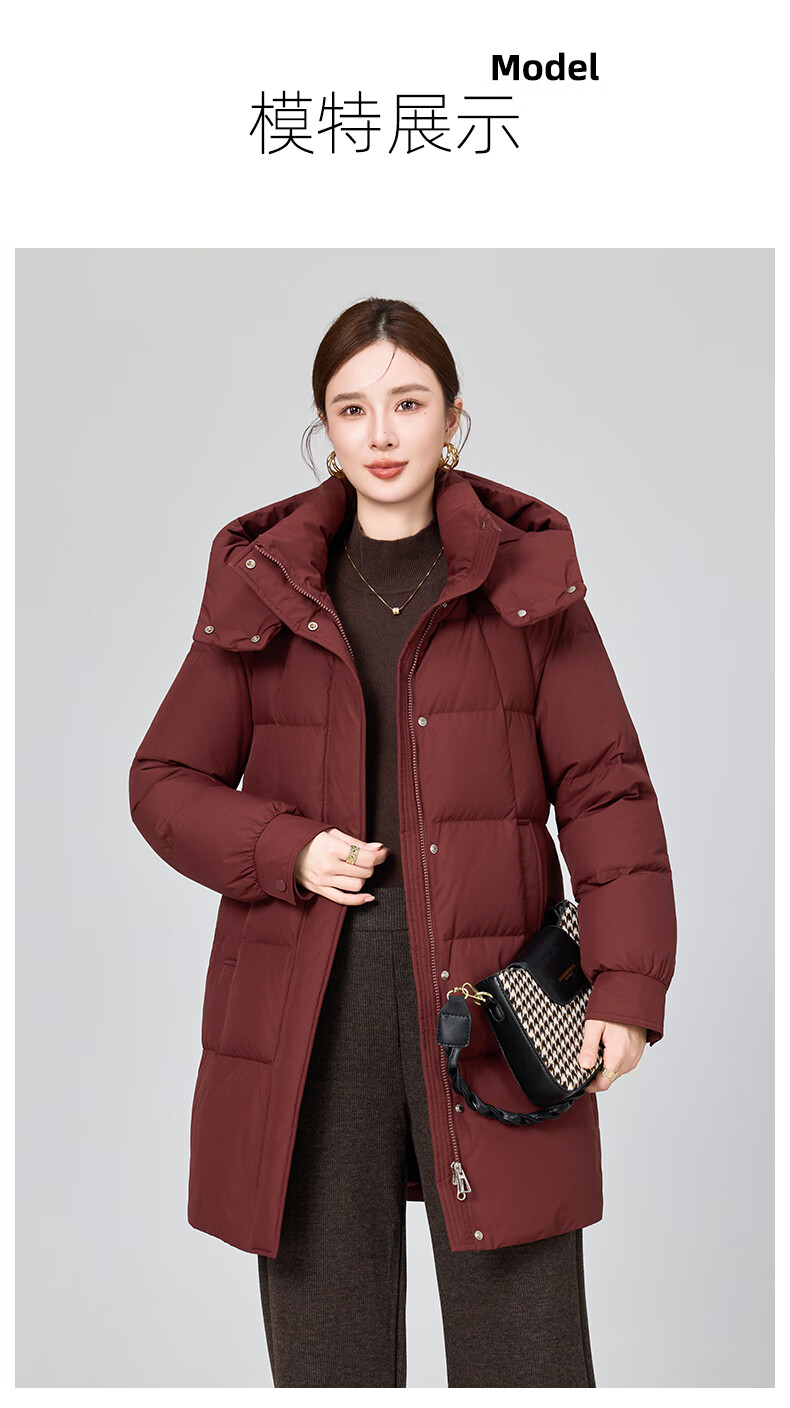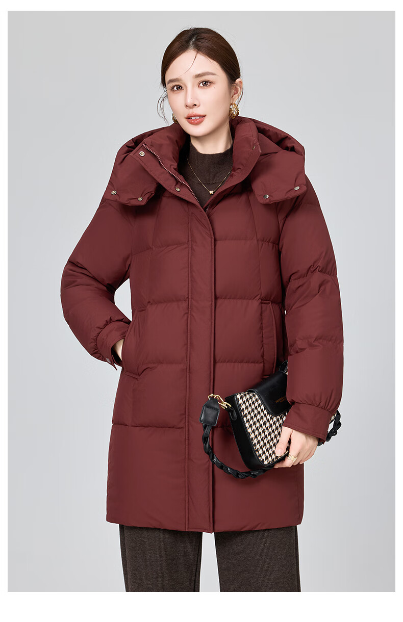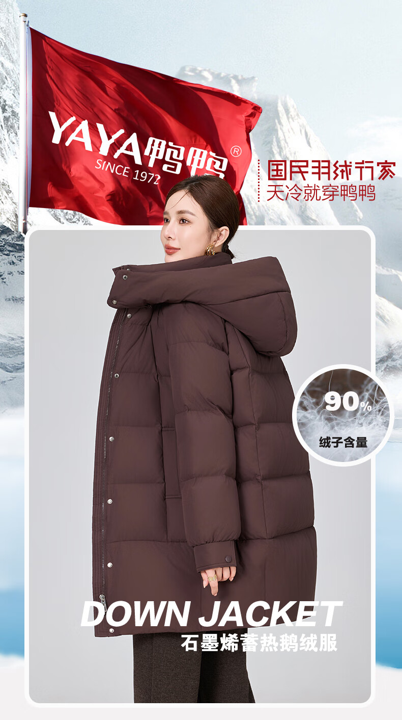 YAYA brand authentic mother's goose down jacket mid-length 2025 new middle-aged and elderly women's winter down thick coat Begonia Red 2XL (recommended 120-135 catties)
