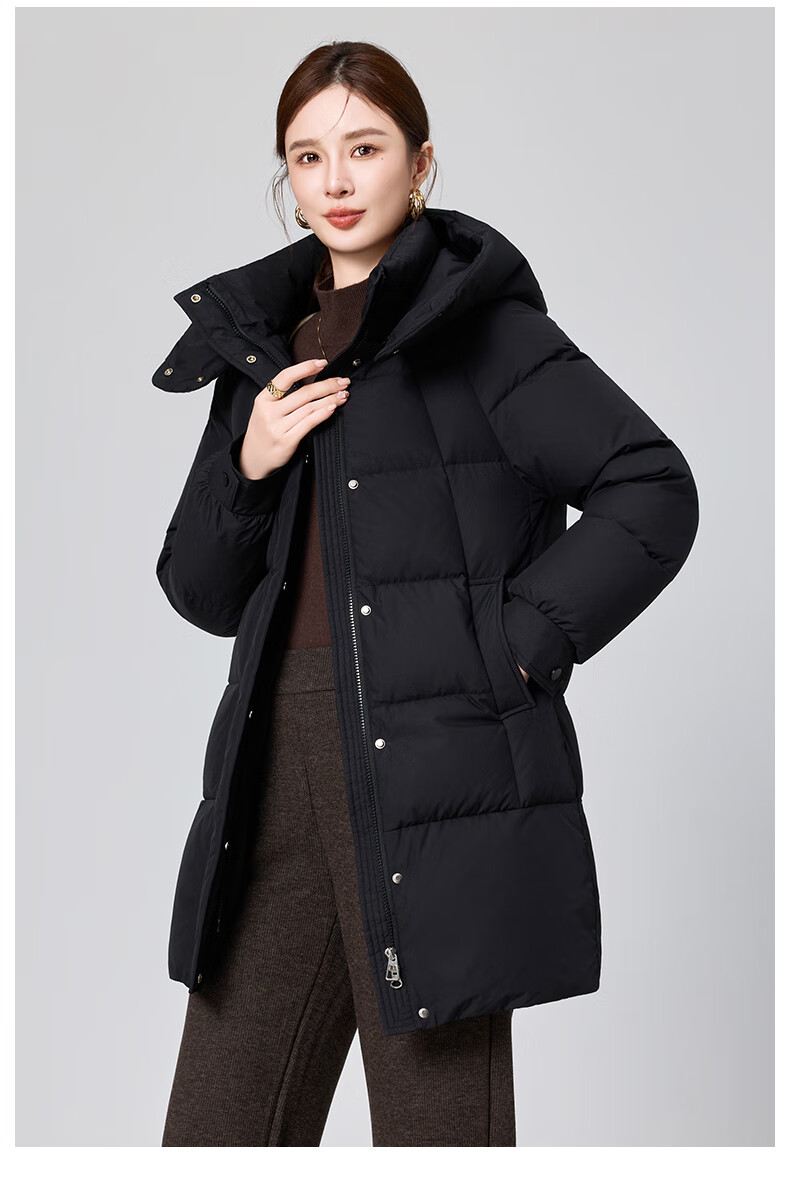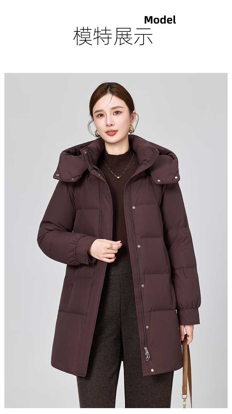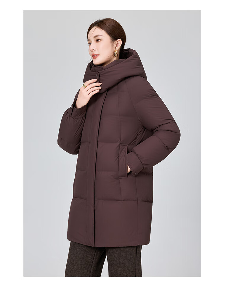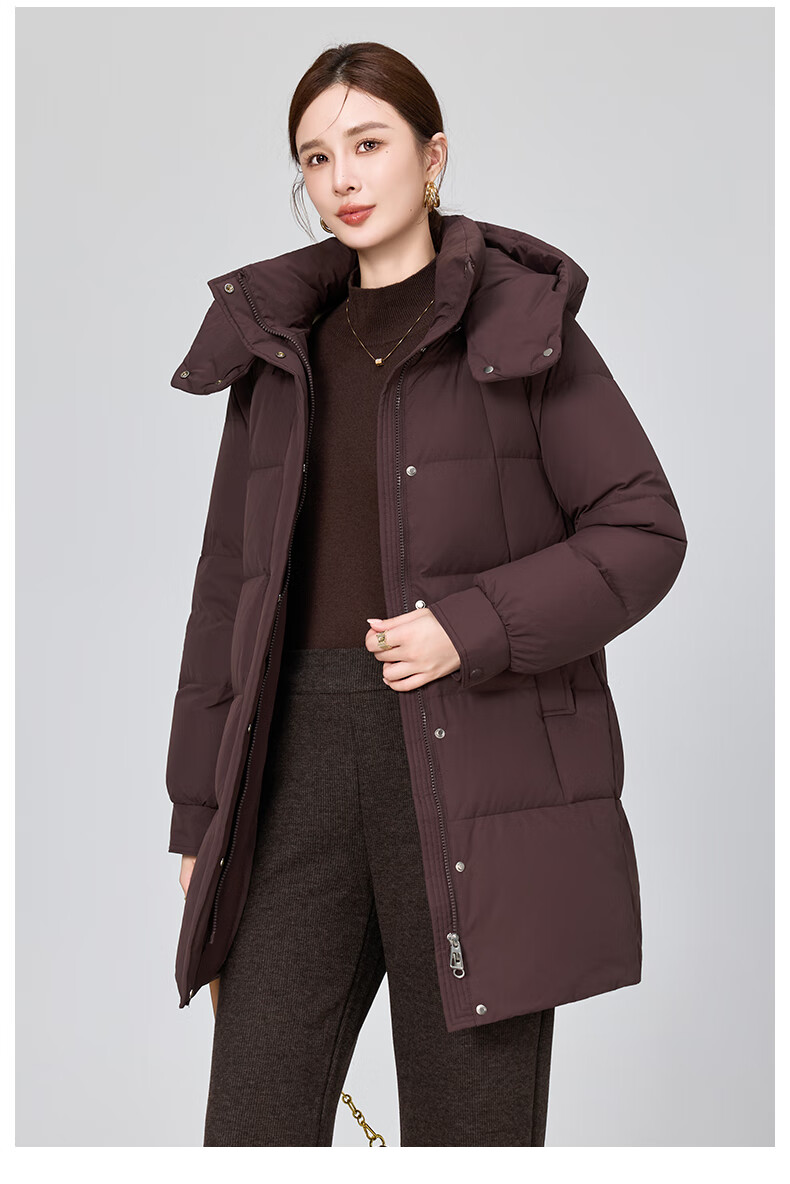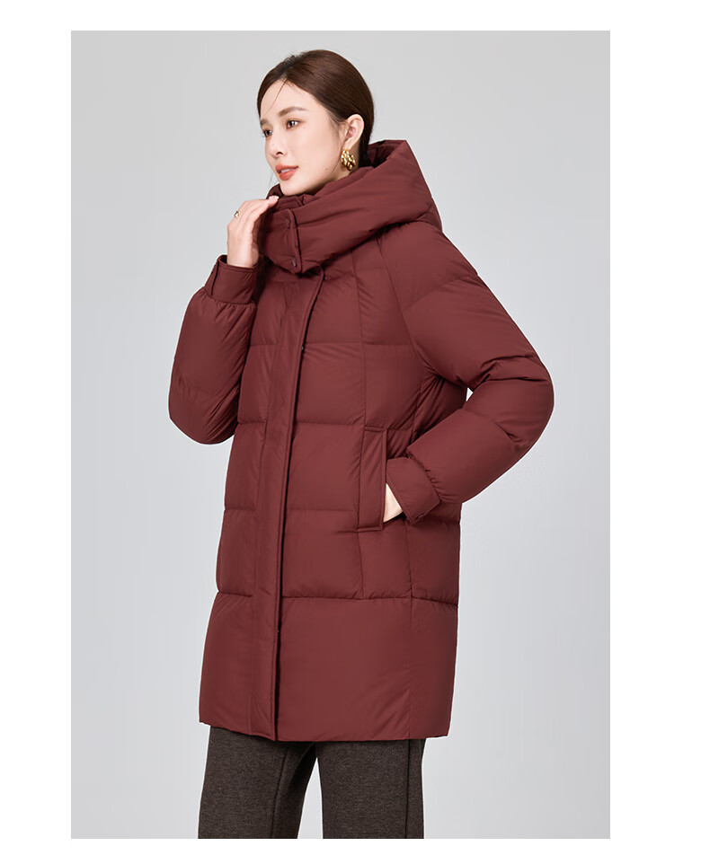 YAYA brand authentic mother's goose down jacket mid-length 2025 new middle-aged and elderly women's winter down thick coat Begonia Red 2XL (recommended 120-135 catties)
