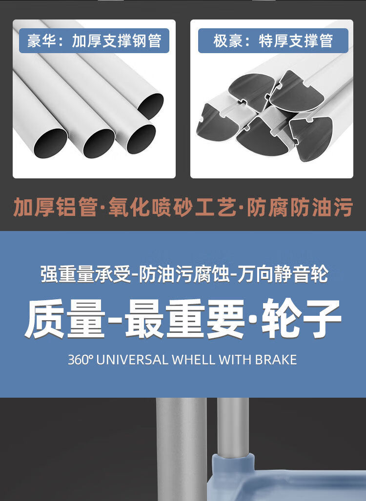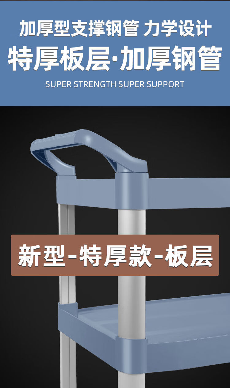 BEYZK hotel dining cart three-layer trolley storage hanging bucket bowl collection cart with trash can multi-functional plastic restaurant hotel extra thick medium square tube dining wheel + invoicing standard