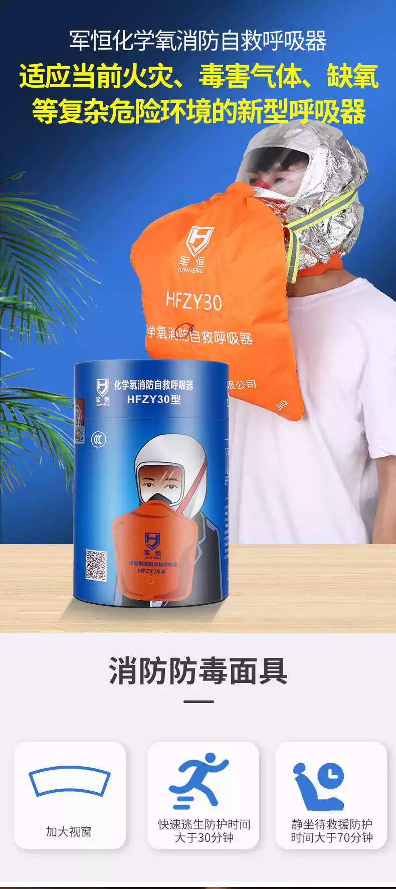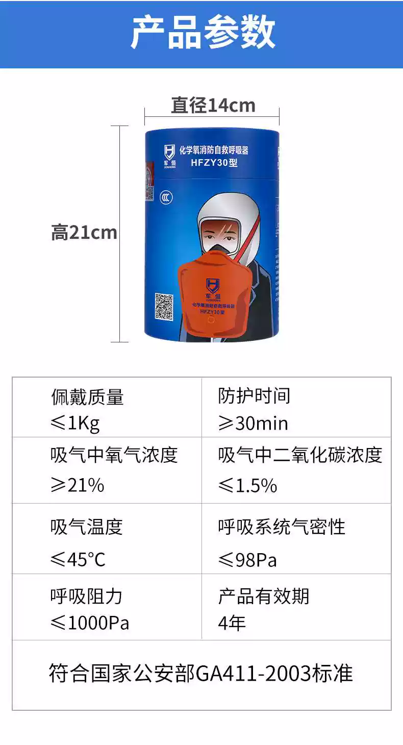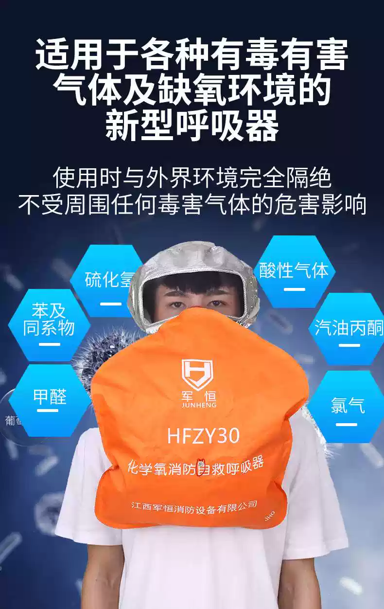 Junheng chemical oxygen fire self-rescue respirator filter gas mask fire escape personal protection self-generated oxygen Tangan boxed chemical oxygen respirator