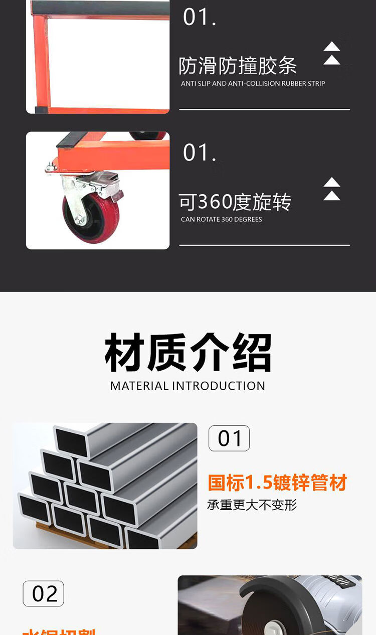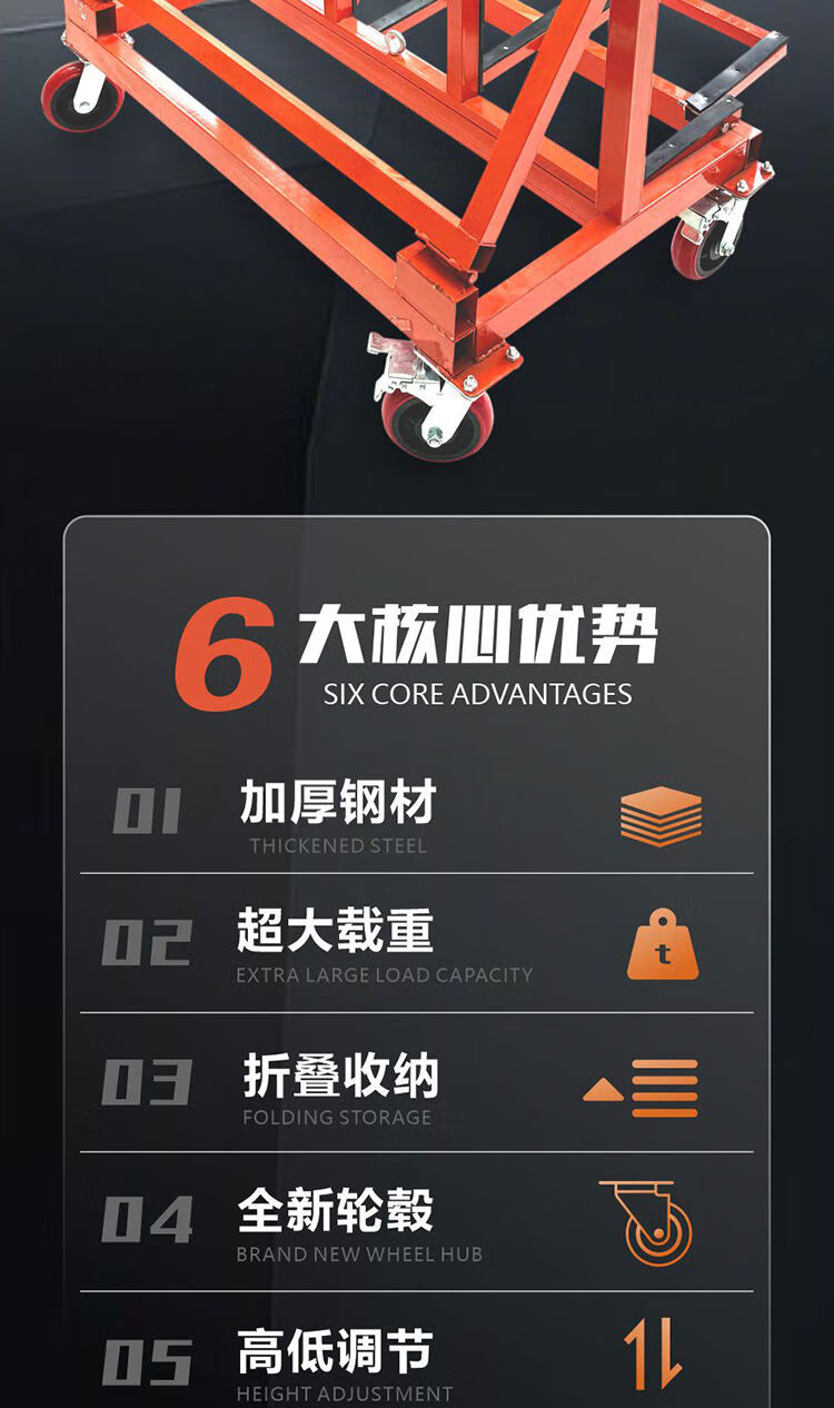 BEYZK glass door and window trolley new four-wheel flat plate universal wheel folding construction site handling large wheel portable trolley thickened folding trolley - 800 kg - 4 Vientiane brake 6 inch rubber wheel