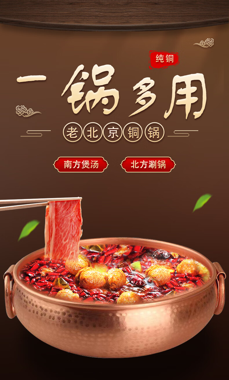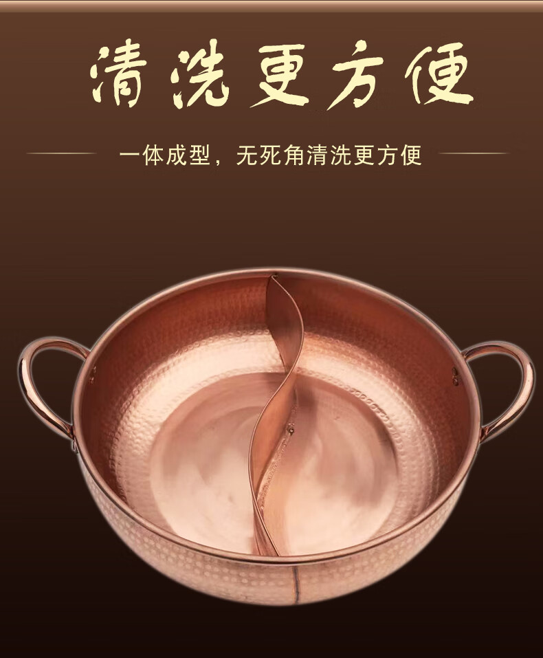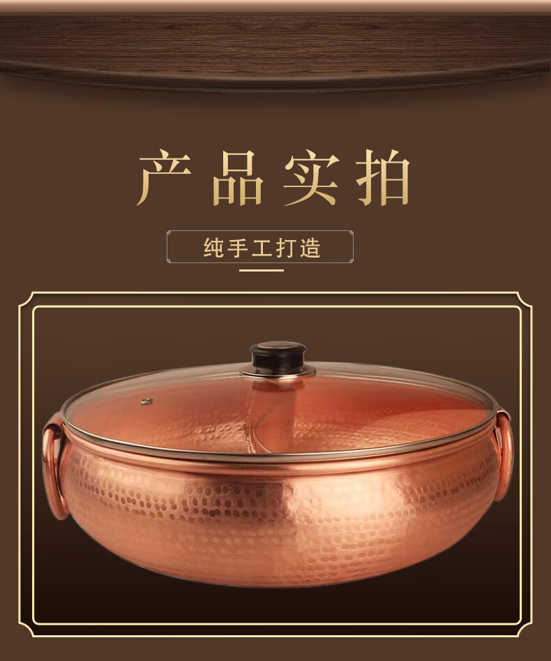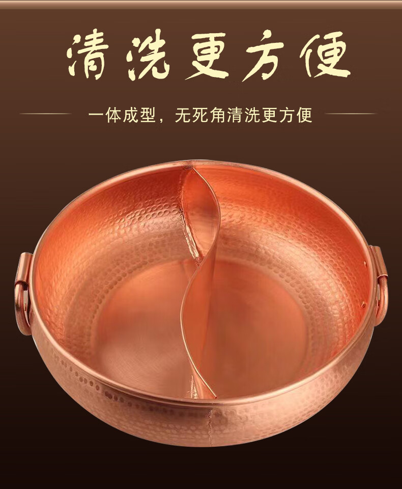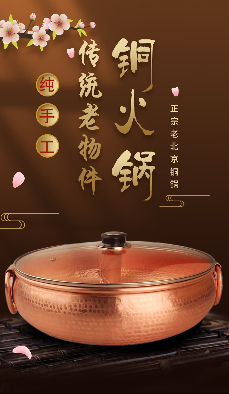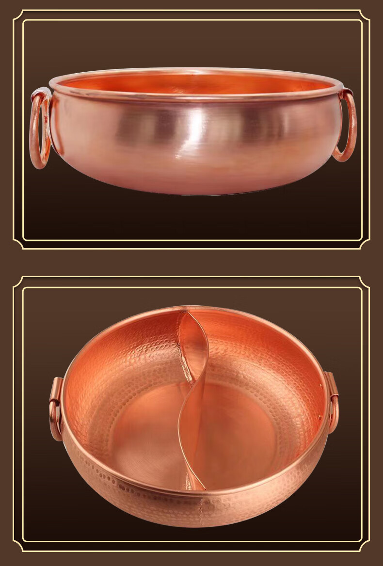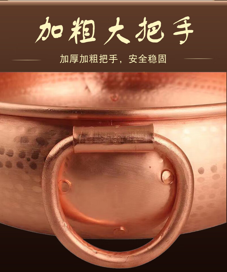 Fat Donglai copper hot pot charcoal extra thick old Beijing hot pot special mandarin duck pot old-fashioned household handmade copper pot red copper extra thick 34cm