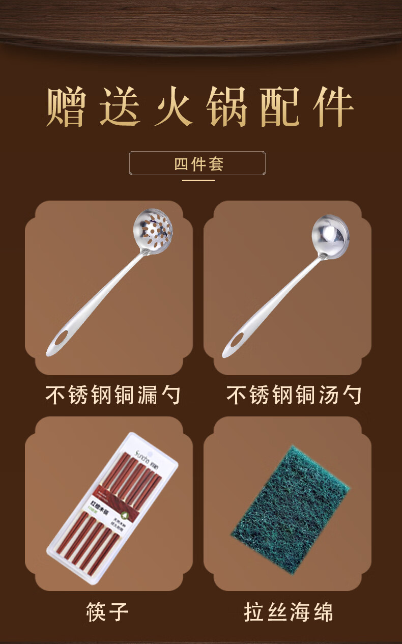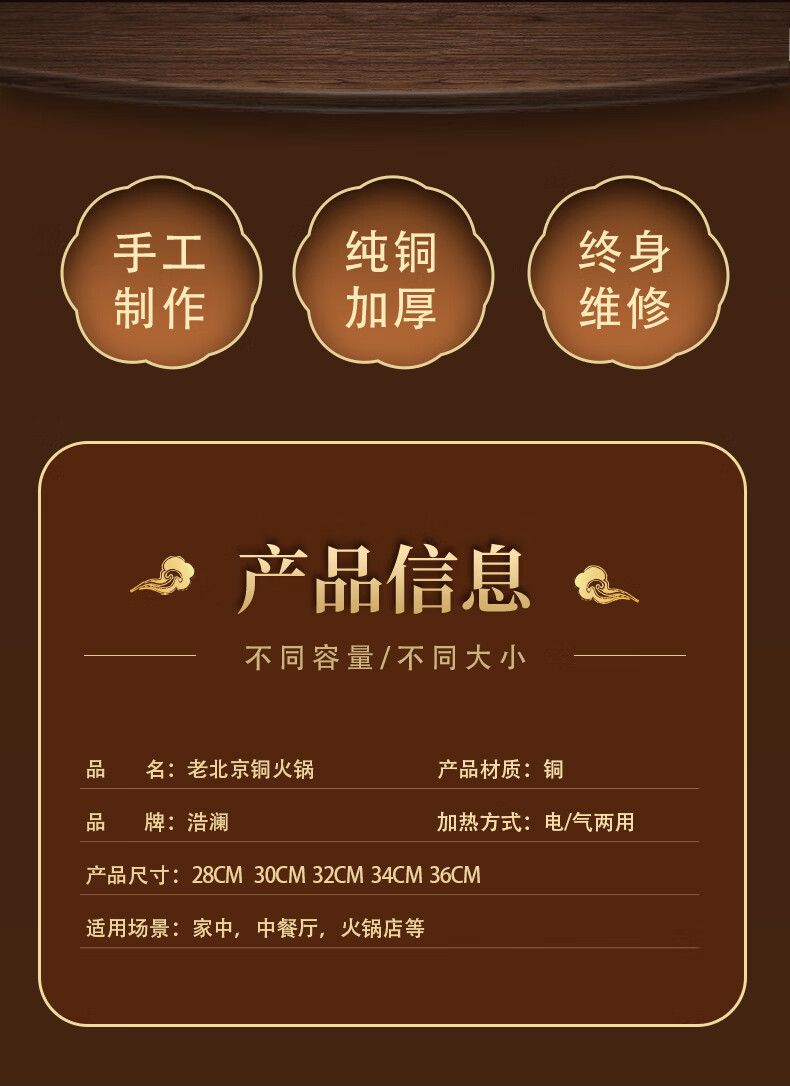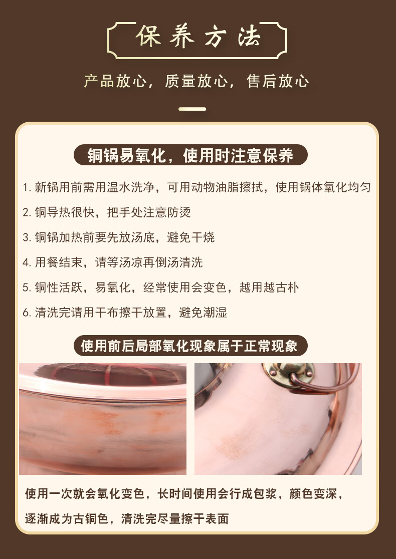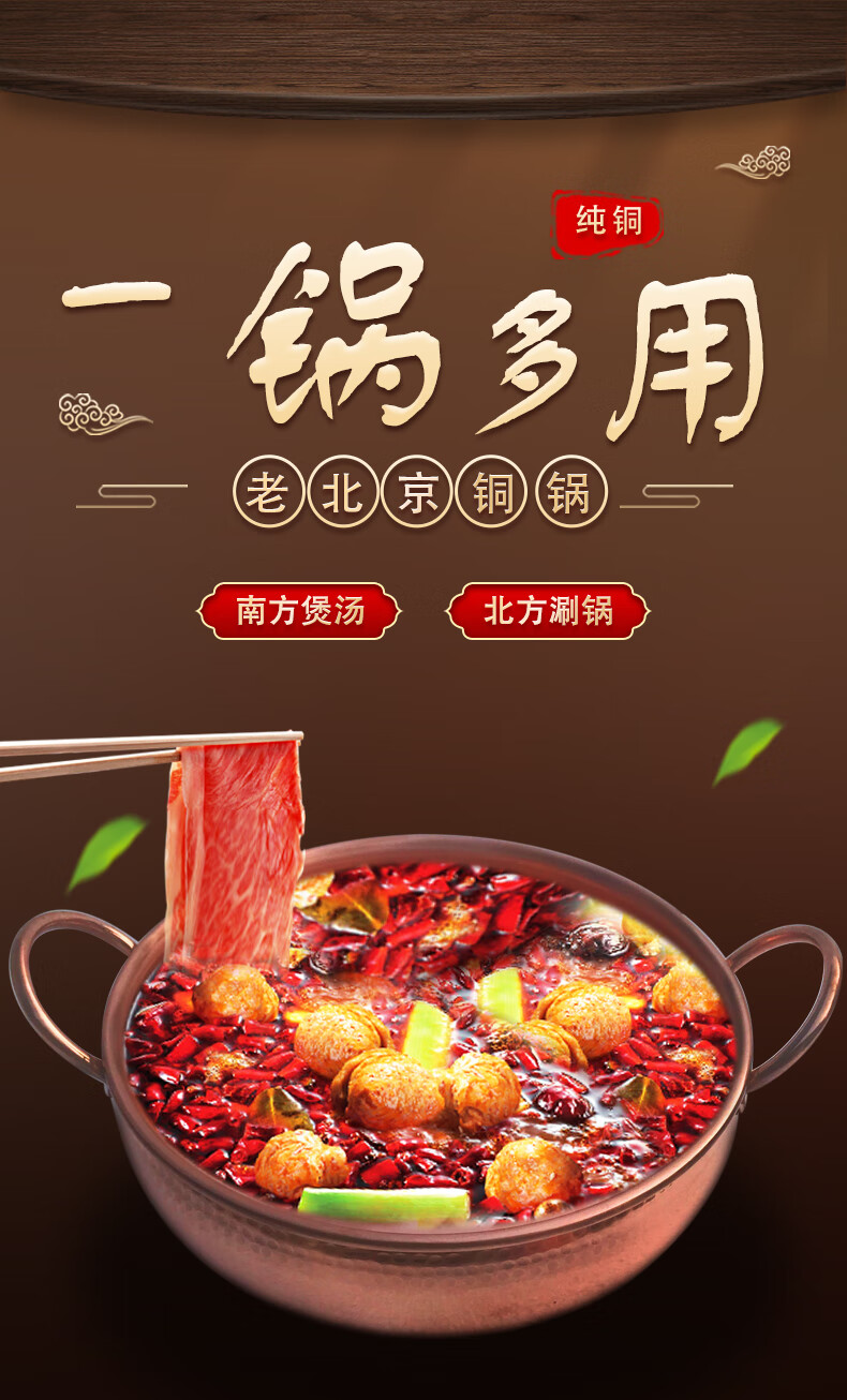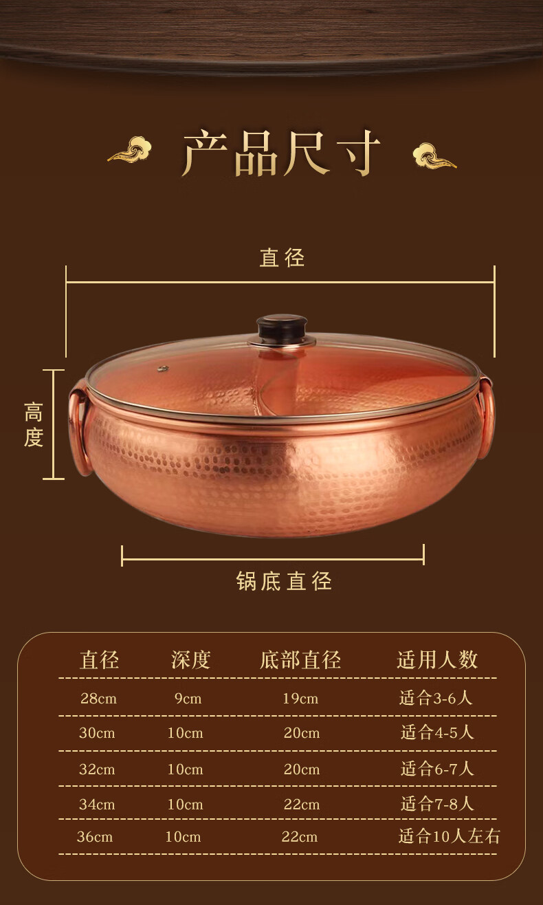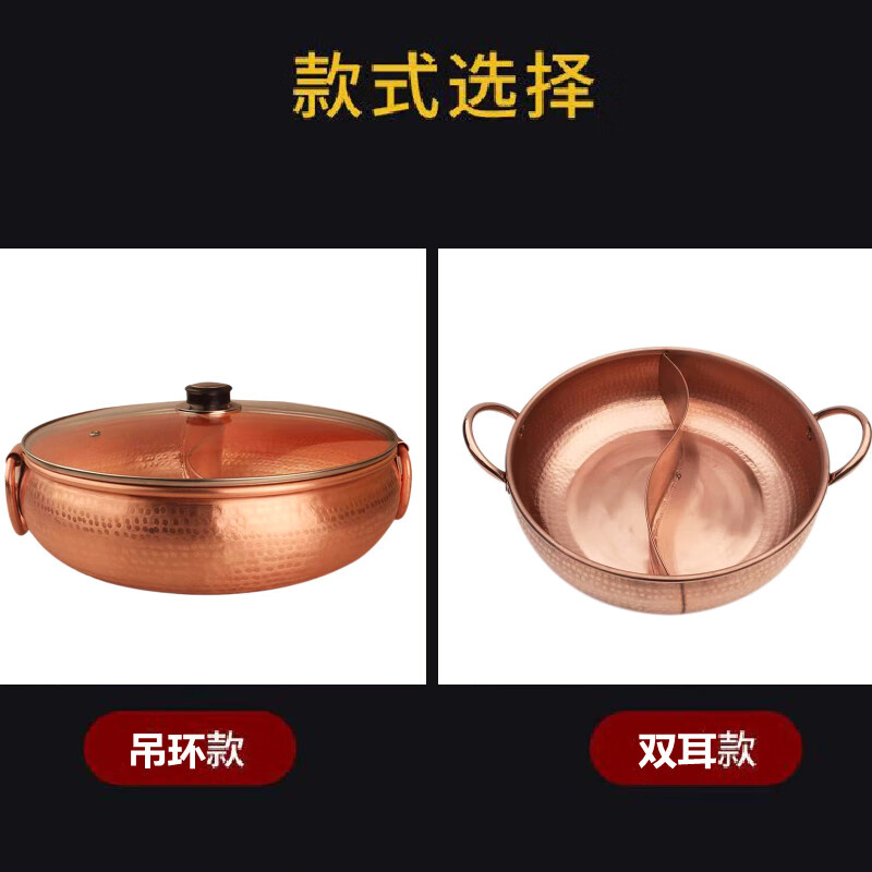 Fat Donglai copper hot pot charcoal extra thick old Beijing hot pot special mandarin duck pot old-fashioned household handmade copper pot red copper extra thick 34cm