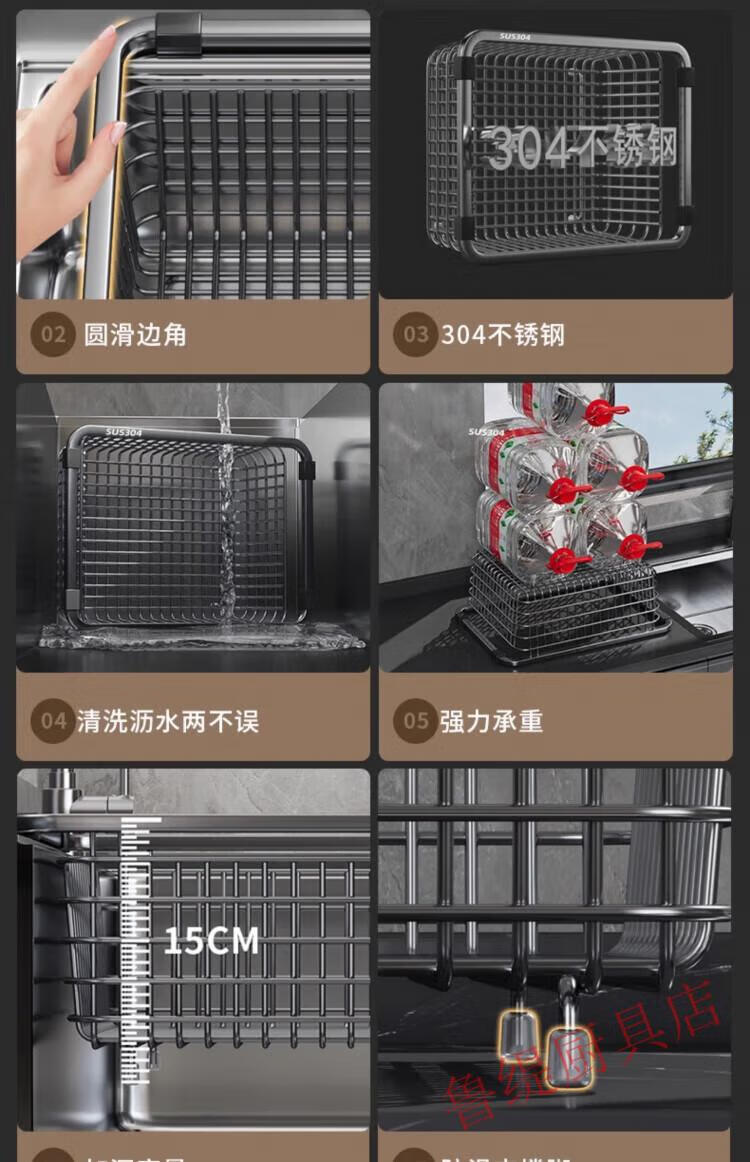 Zwilling German Seiko Quality Drain Basket Kitchen Sink Stainless Steel Drain Trough Drain Rack Wash Basin Large Single Water 33 Gray 304 Stainless Steel Nano Encrypted Model (Applicable to the Inner Sink Length 2