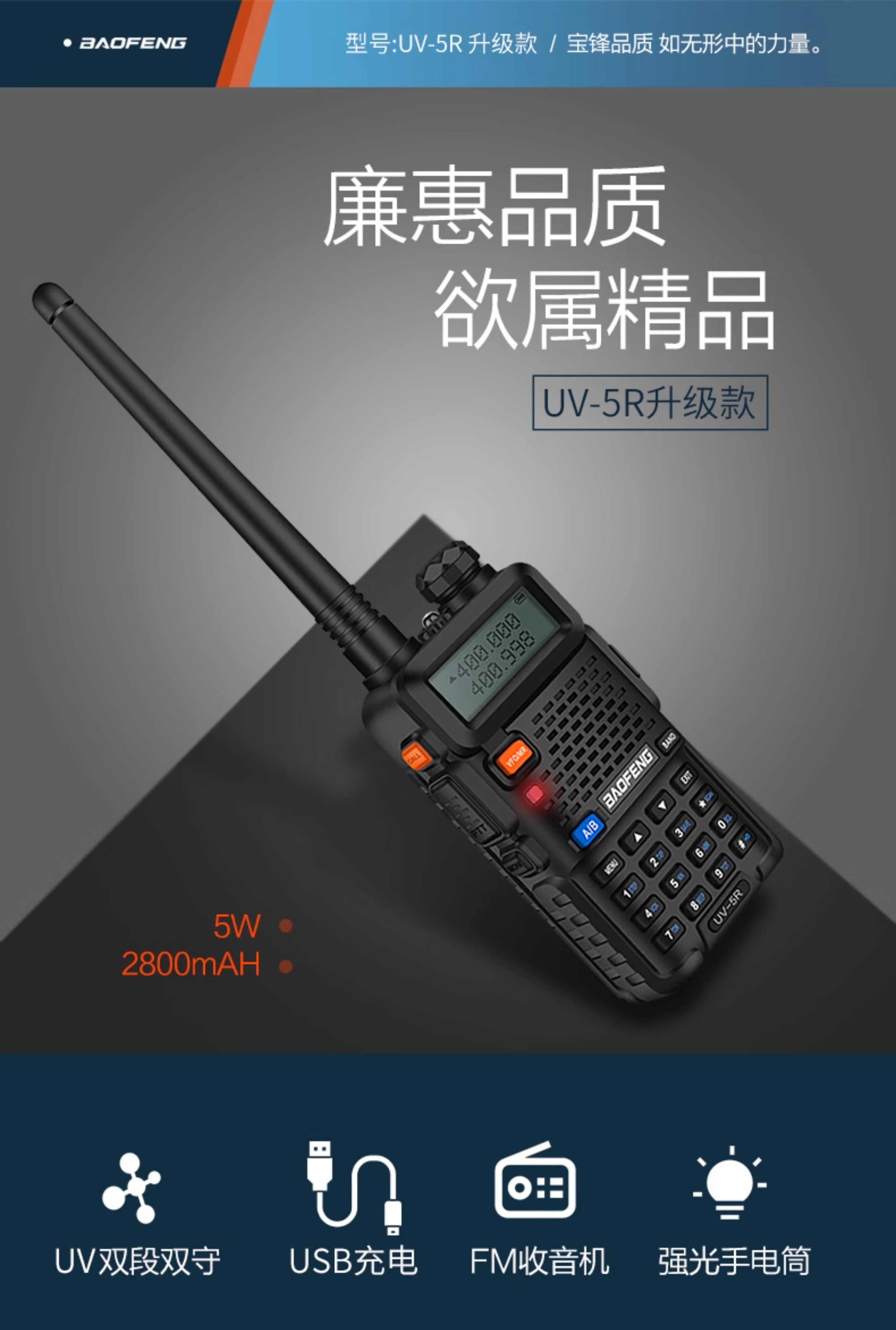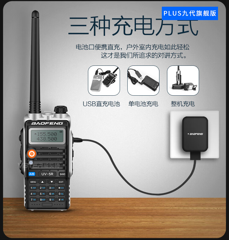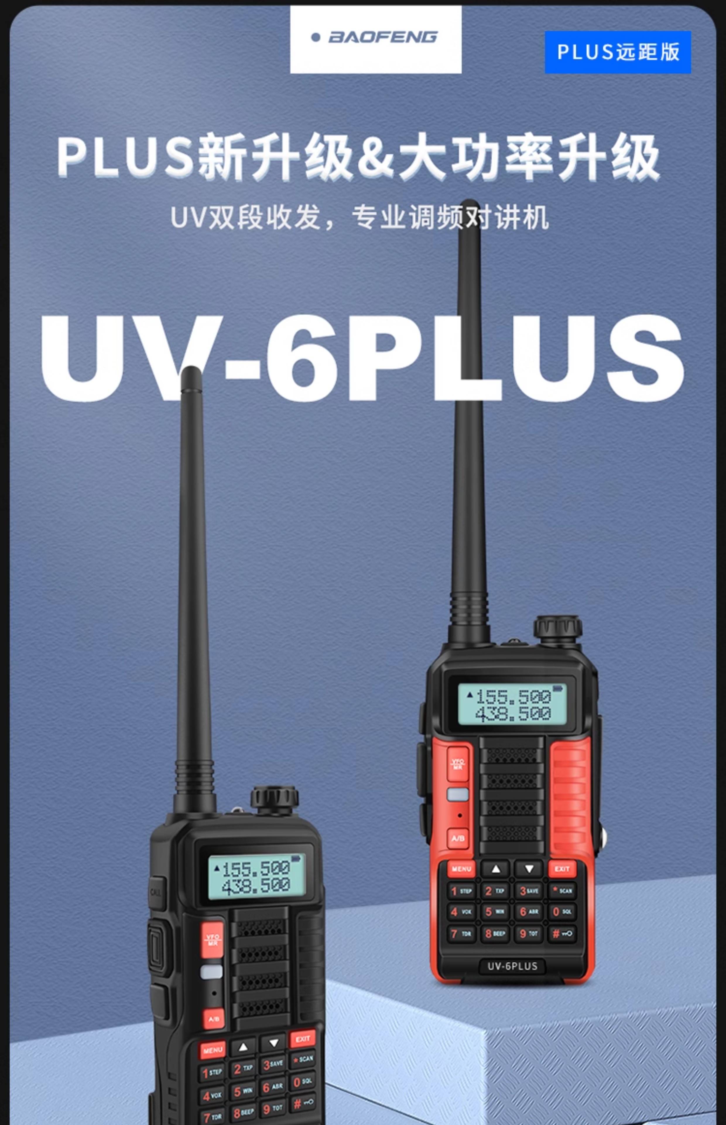 Yuruo Baofeng UV-5RH Walkie-Talkie Self-driving Tour Vehicle Outdoor Device Waterproof UV-9R PUS High Power Hand Station Baofeng Plus LCD Screen--Long Distance Version Red USB Charging None